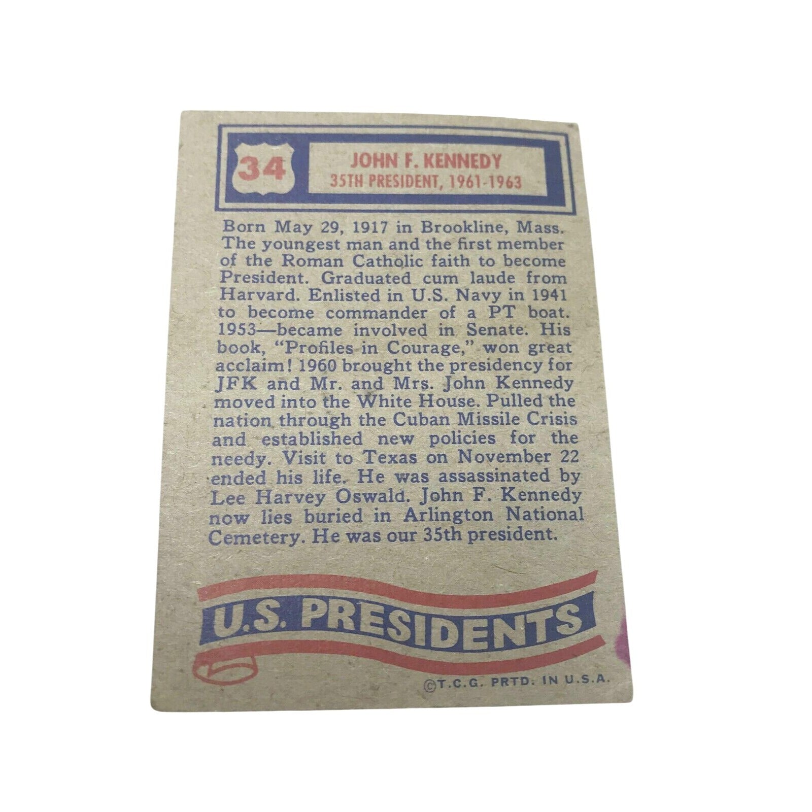 1972 Topps U.S Presidents JOHN F KENNEDY Trading Card #34