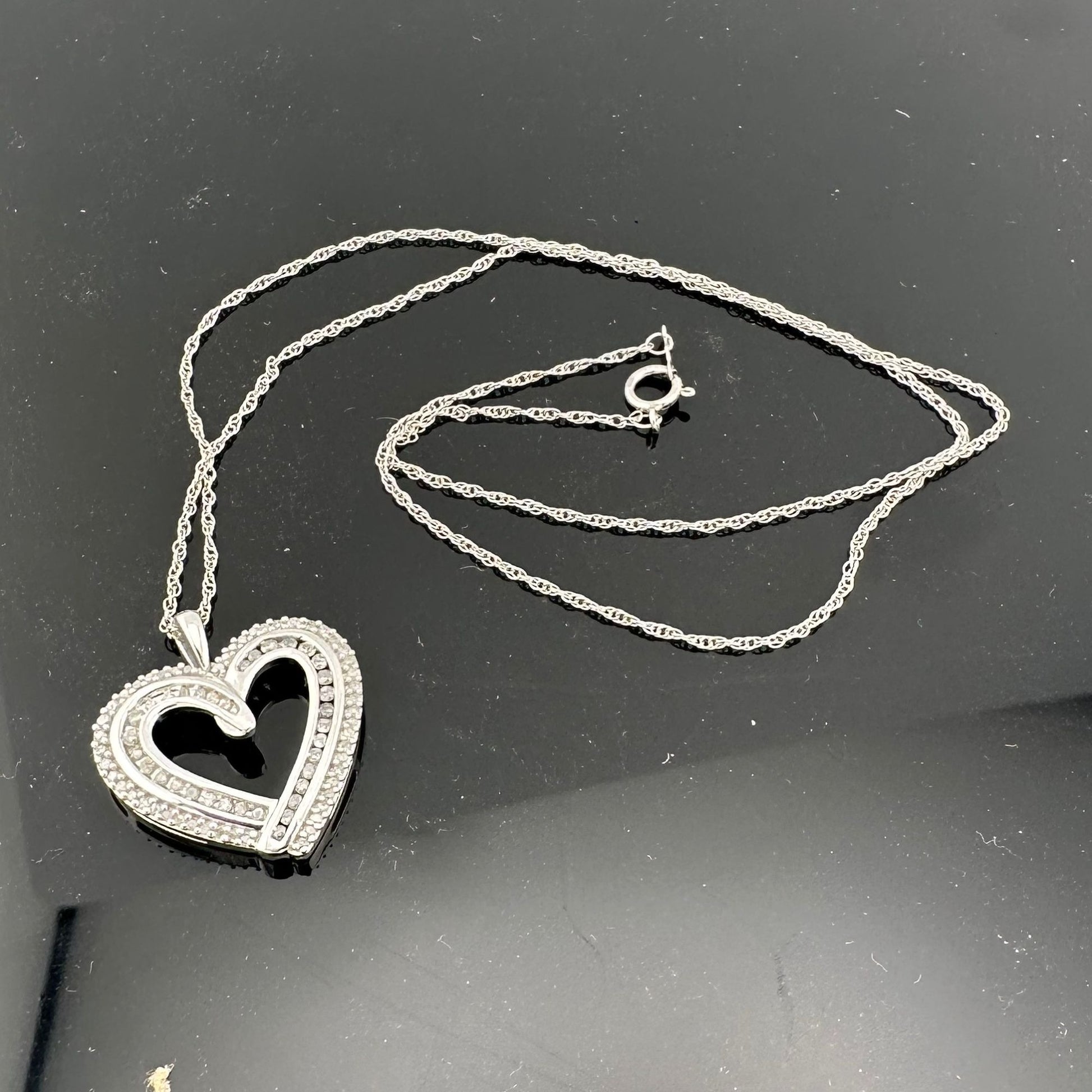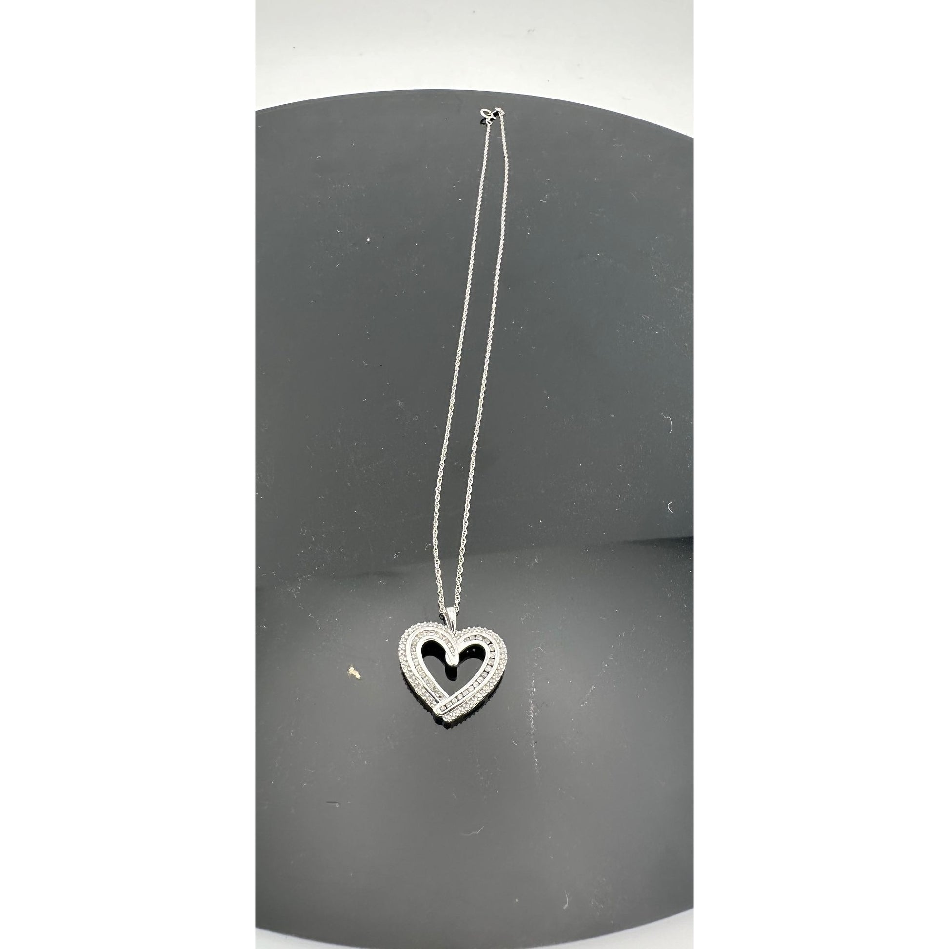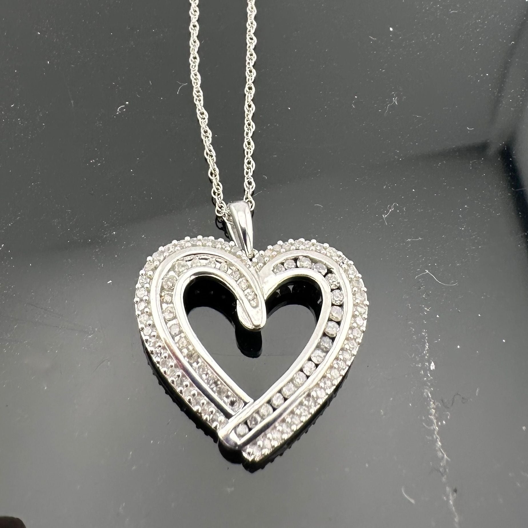 Wide double Row Natural Diamond Heart Necklace. Stunning Standout Design. 1/2 ct of natural diamonds give shine from all angles. .925 Sterling Silver with 18" Sterling Chain.