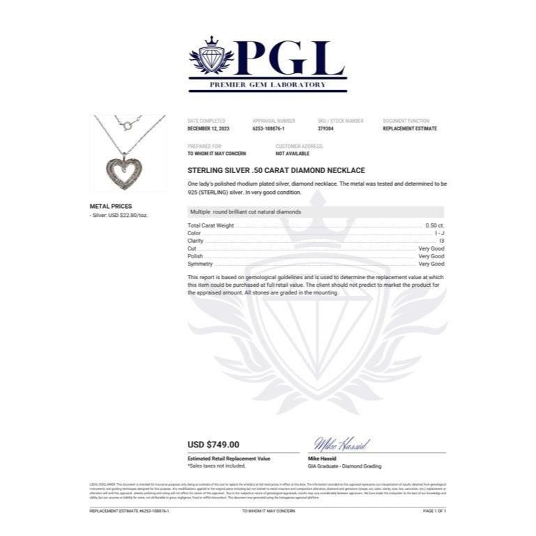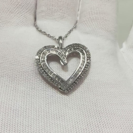 Beautiful 1/2 Carat Natural Diamond Heart Pendant Necklace with .925 Sterling Chain