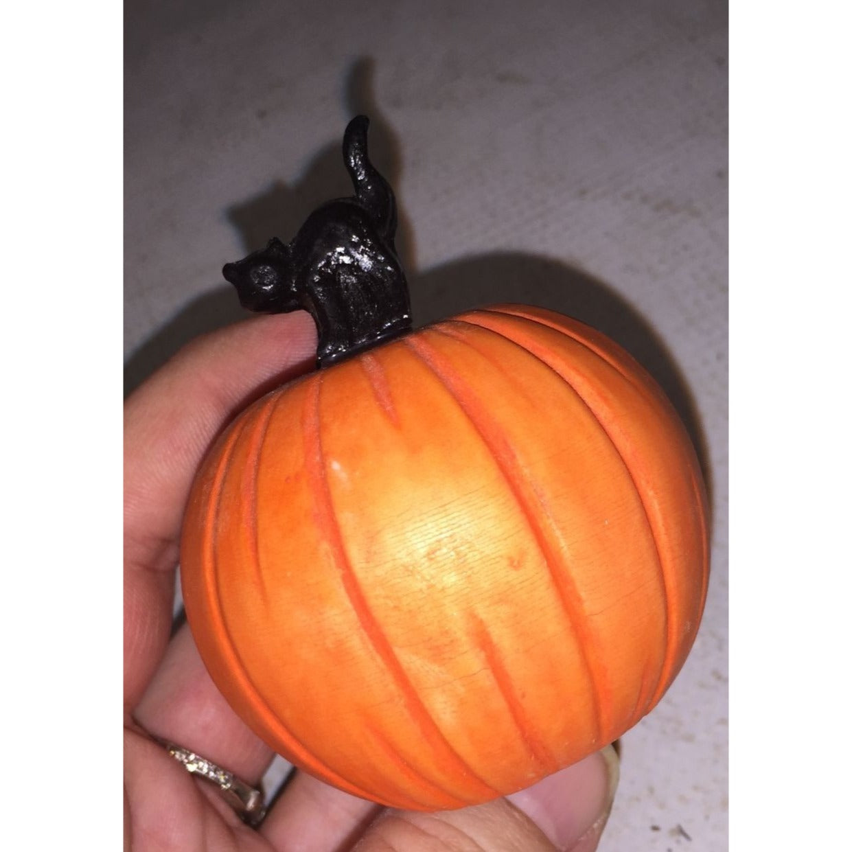 Black Cat Standing on an Orange Pumpkin - Halloween Decor/Figurine