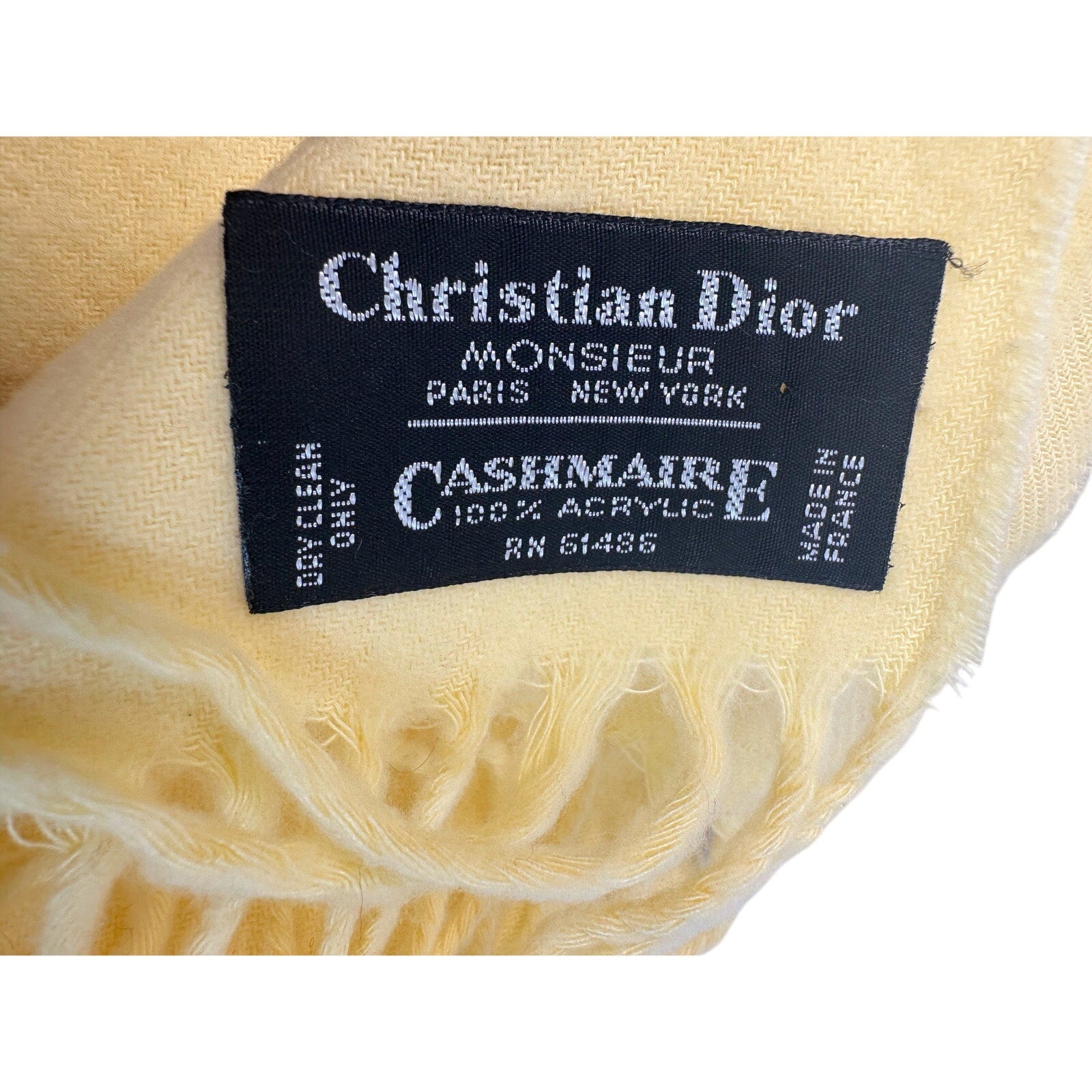 Vintage Christian Dior MONSIEUR Paris New York men's scarf. Cashmaire (100% Acrylic) - Dry Clean only. Made in France. Light / Pale yellow color - varies slightly depending on how the light is hitting it.