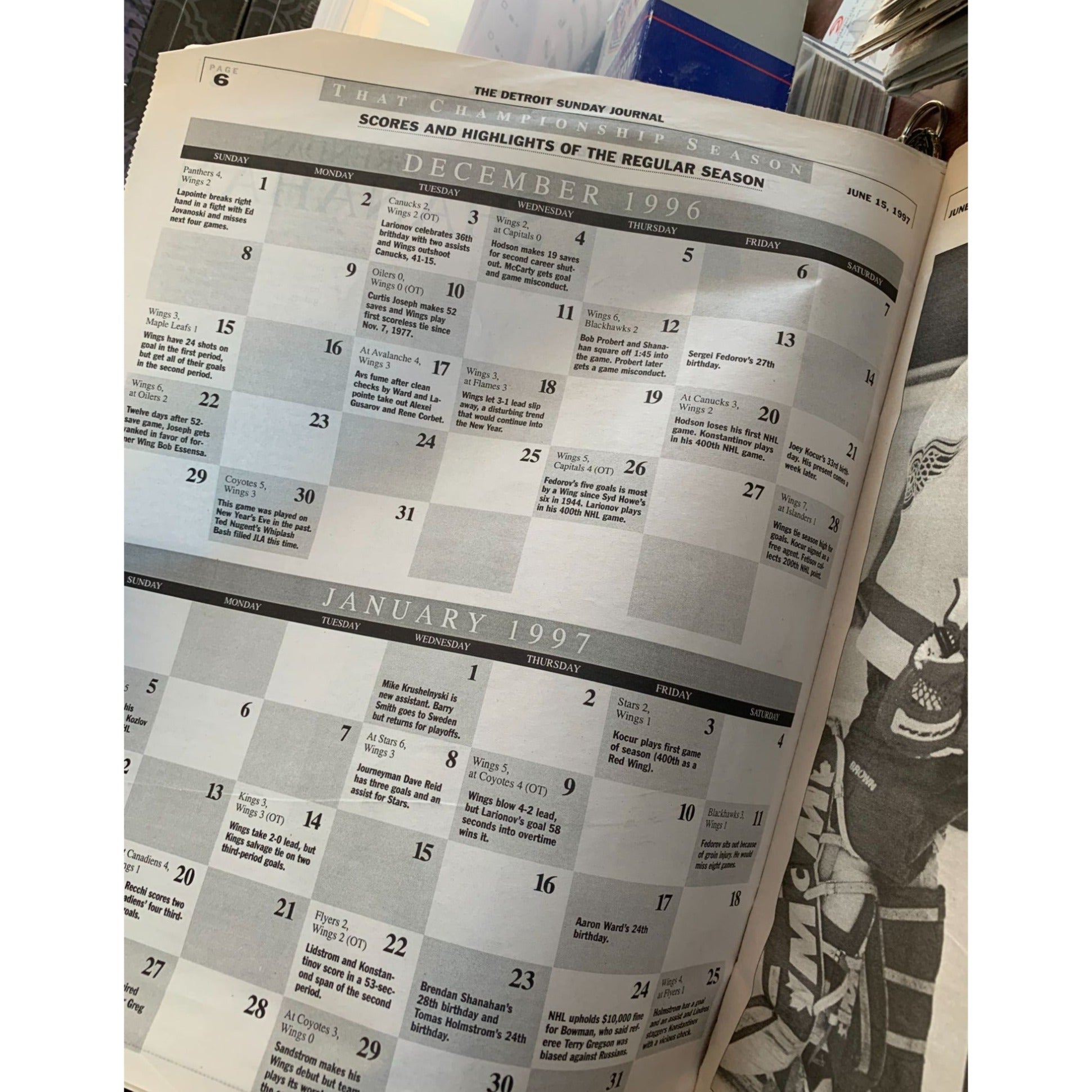The Detroit Sunday Journal June 15, 1997. THAT CHAMPIONSHIP SEASON. Detroit Redwings Hockey. Stanley Cup Champions. Special Section celebrating in the newspaper.