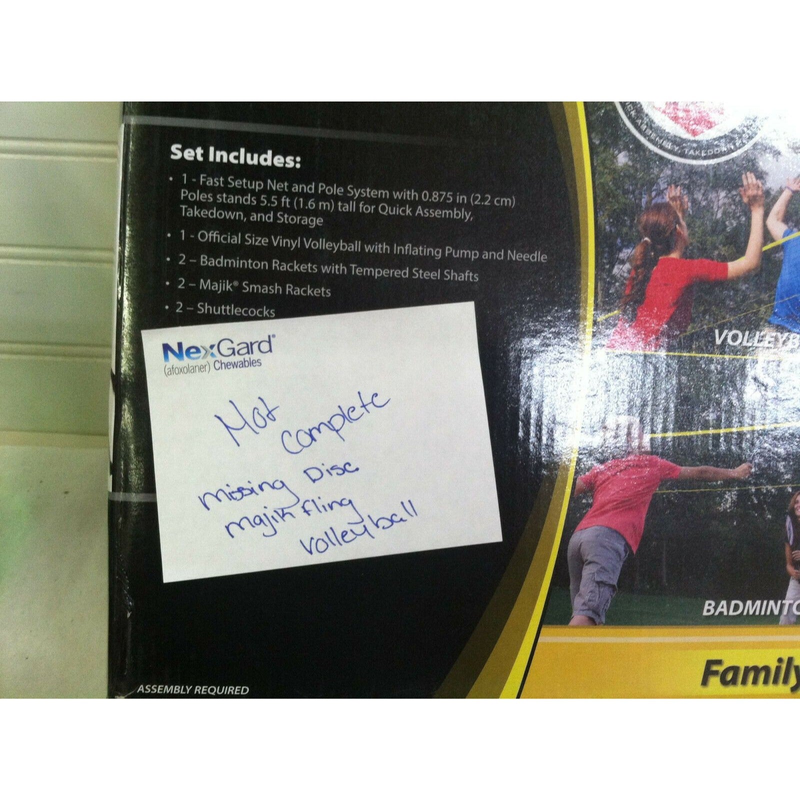 Volleyball, & Jai ali tossers (Majik Fling Launchers), and frisbee (Flying Disc) are NOT Included ( missing from set).
