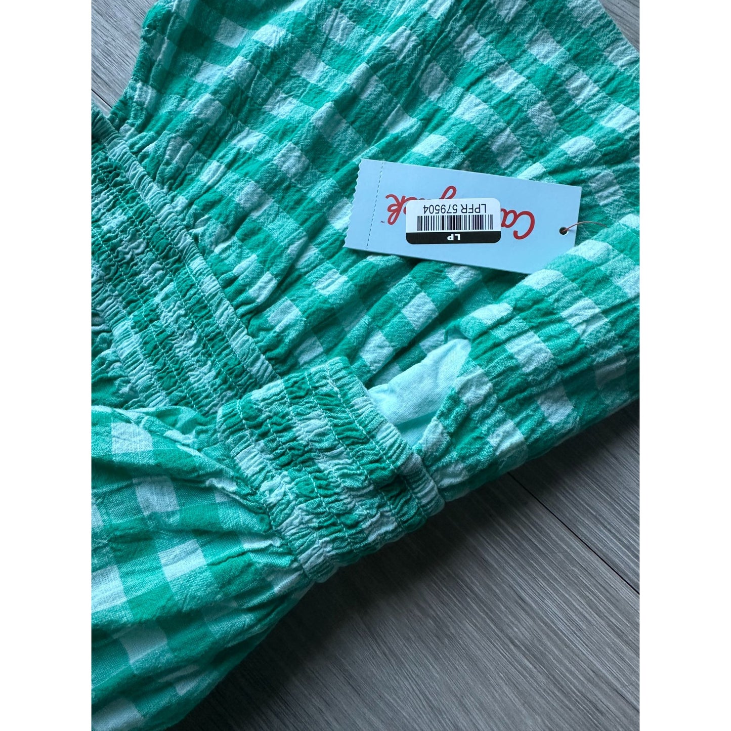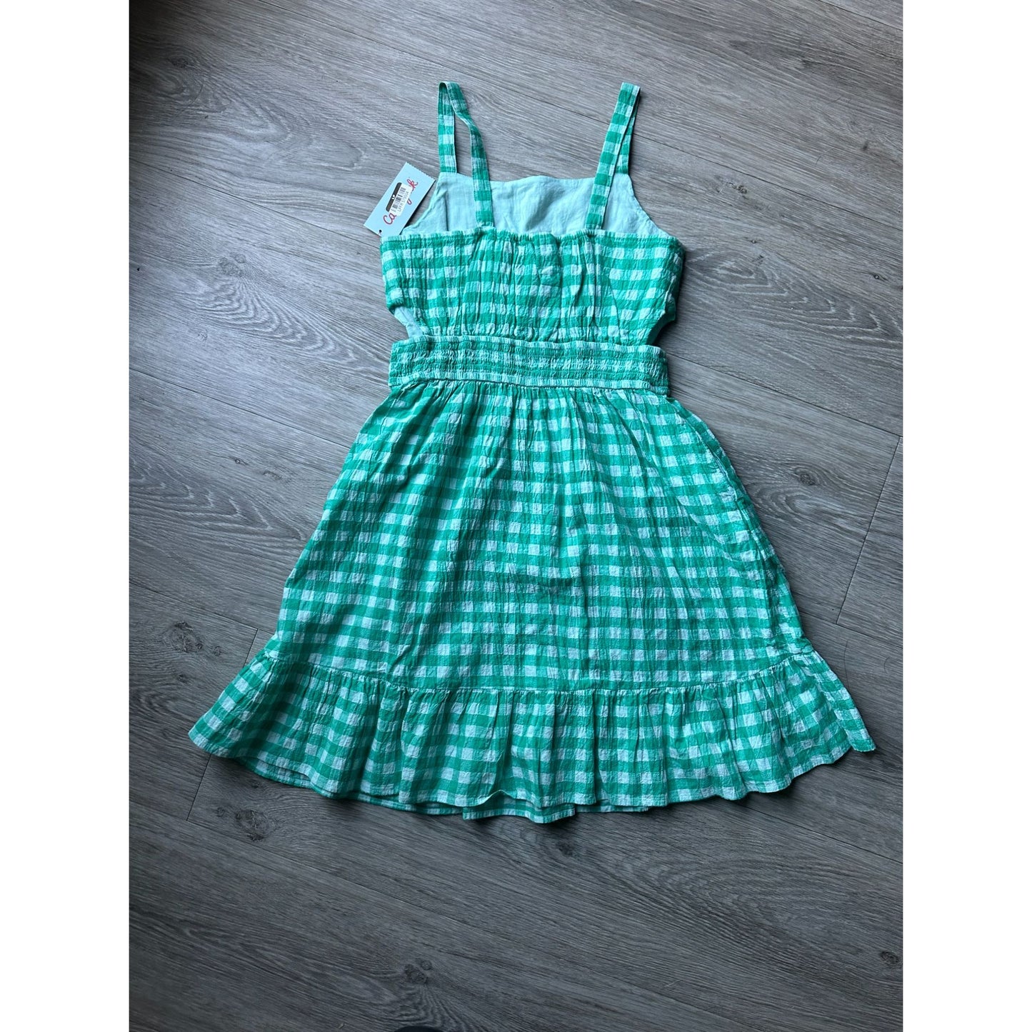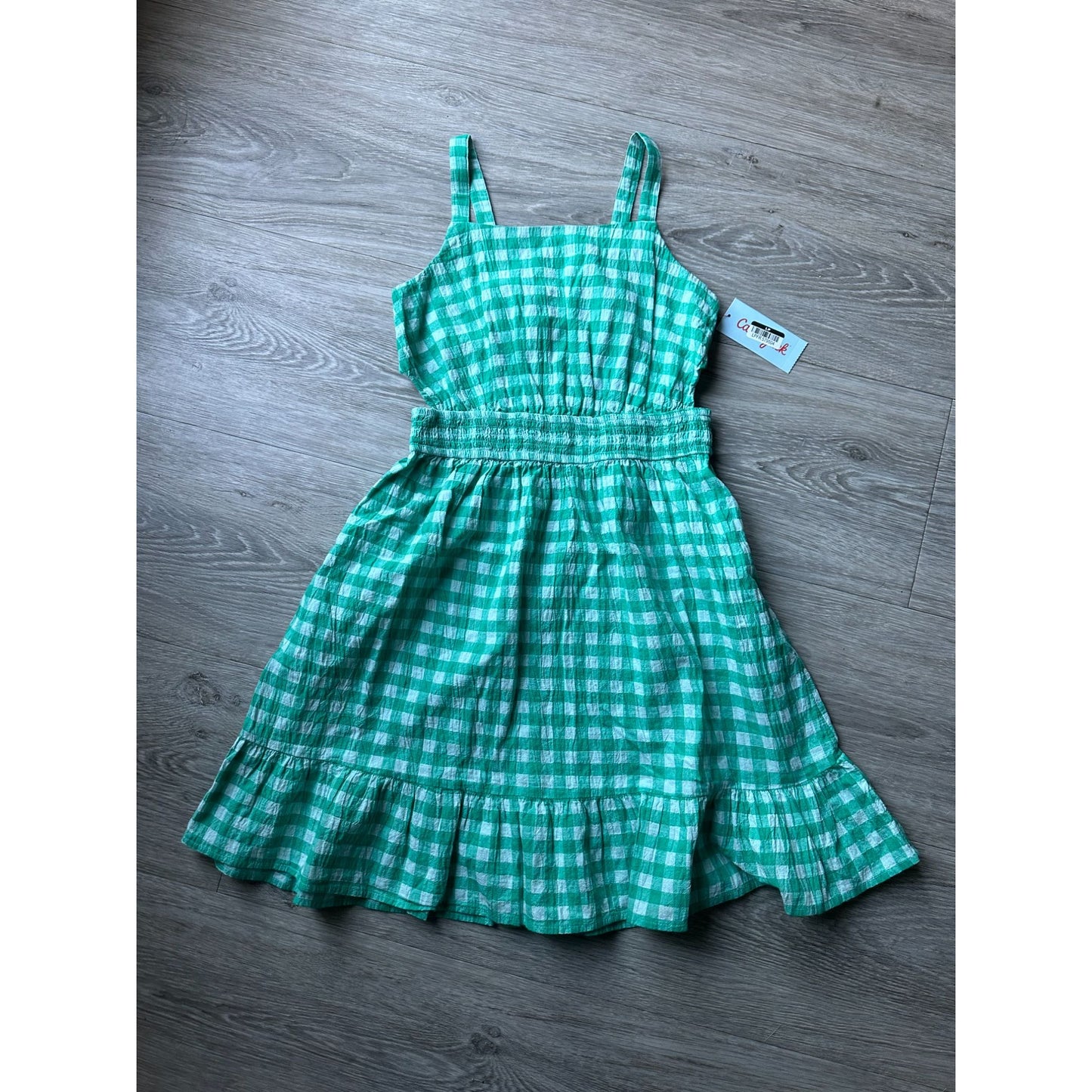 Girls size large Green and white gingham ( checkered) sundress. Smocked waist with Small cutouts. Pockets!