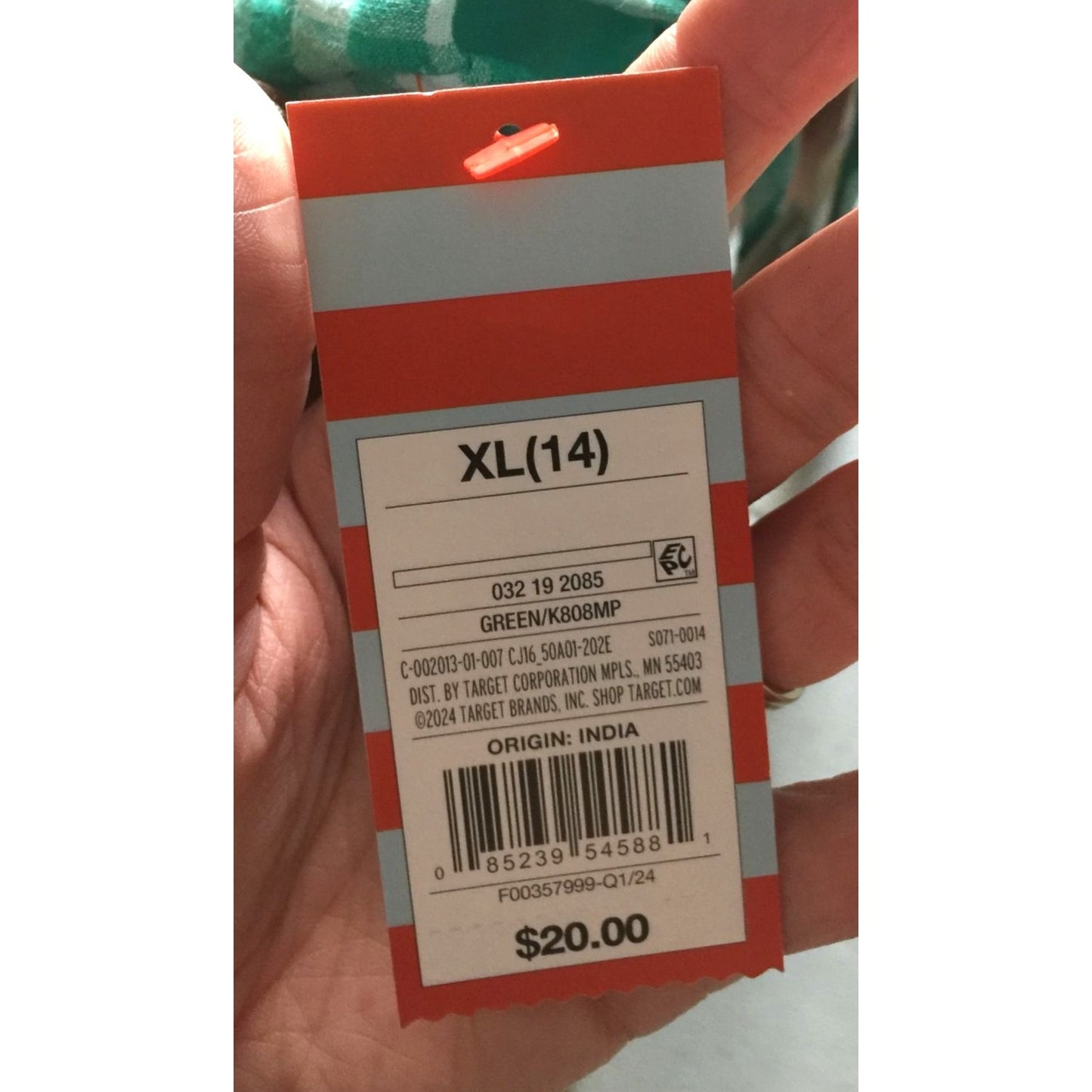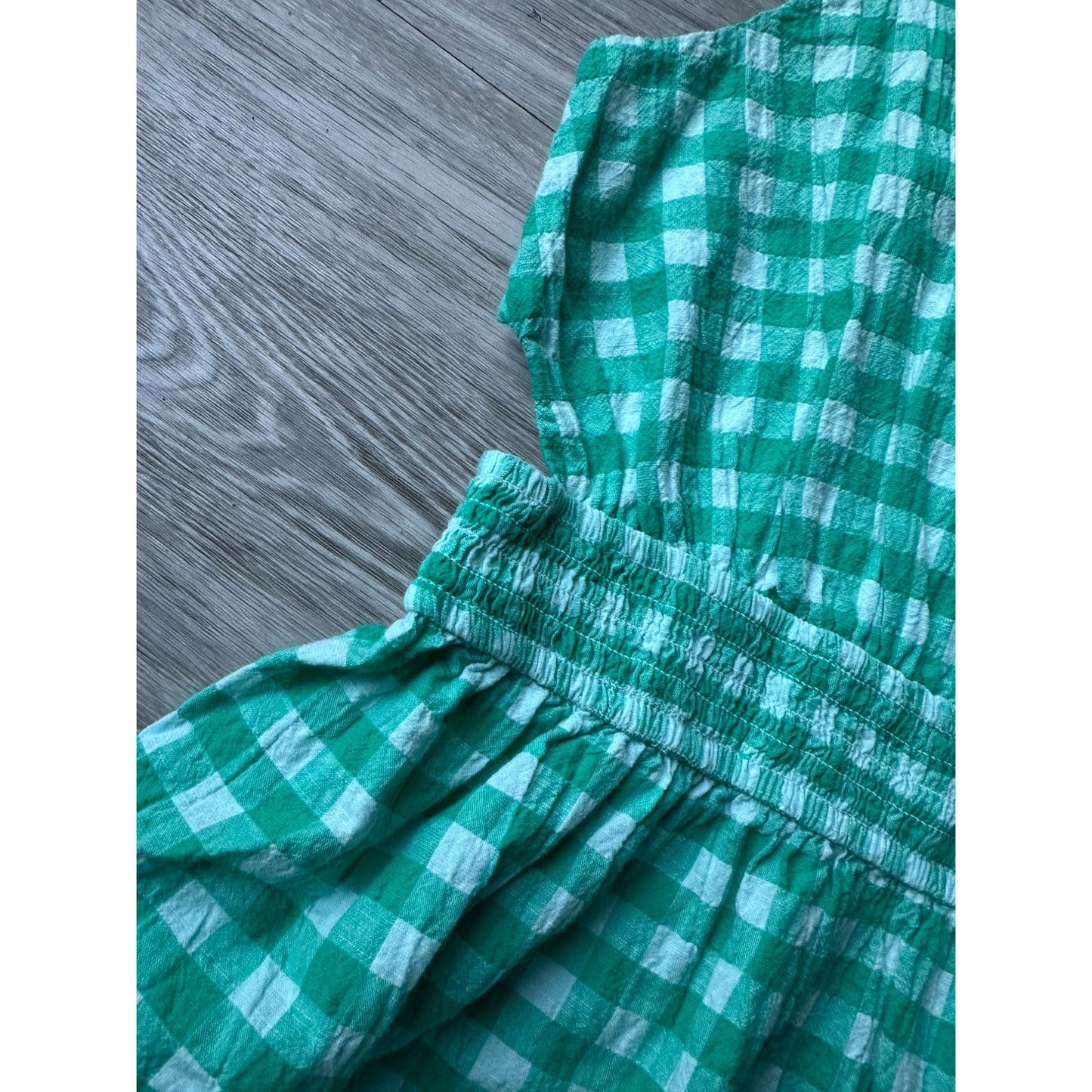 Girls size extra large Green and white gingham ( checkered) sundress. Smocked waist with Small cutouts. Pockets!