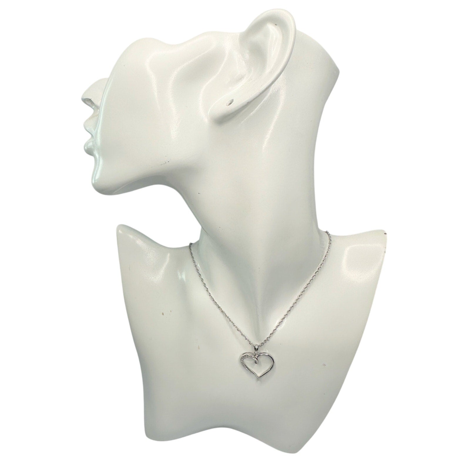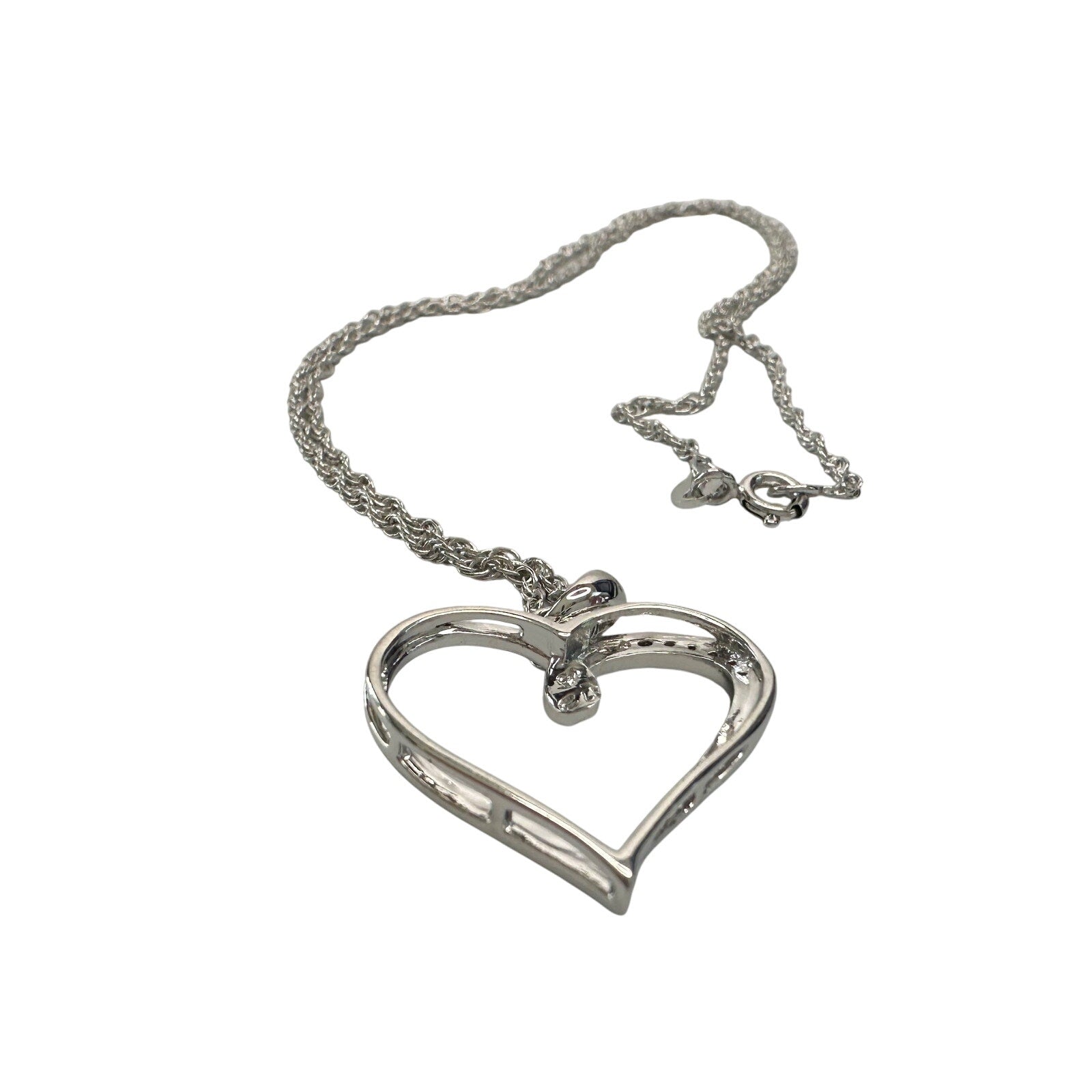 Heart Pendant with Diamond Accent - Rhodium Plated with 15" chain