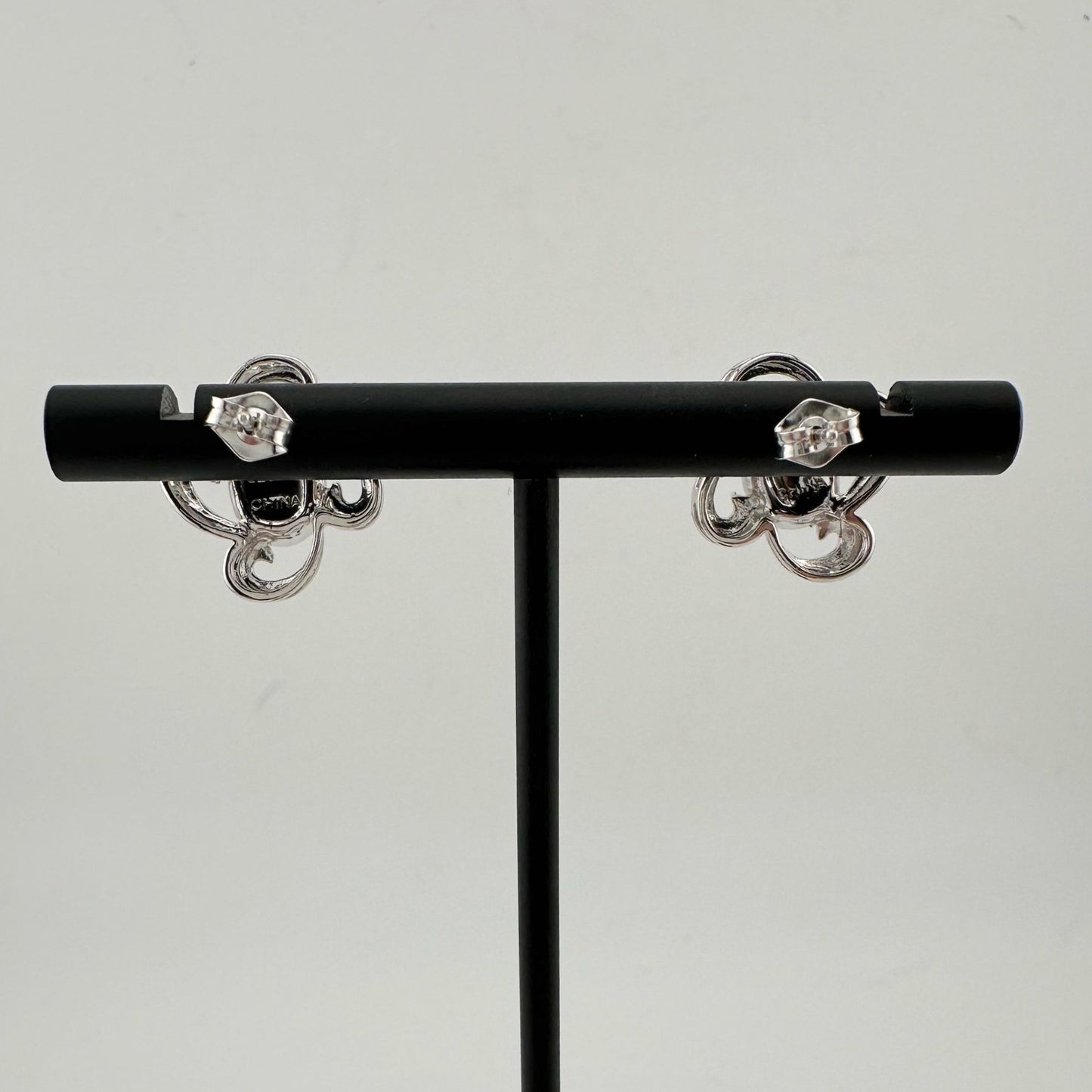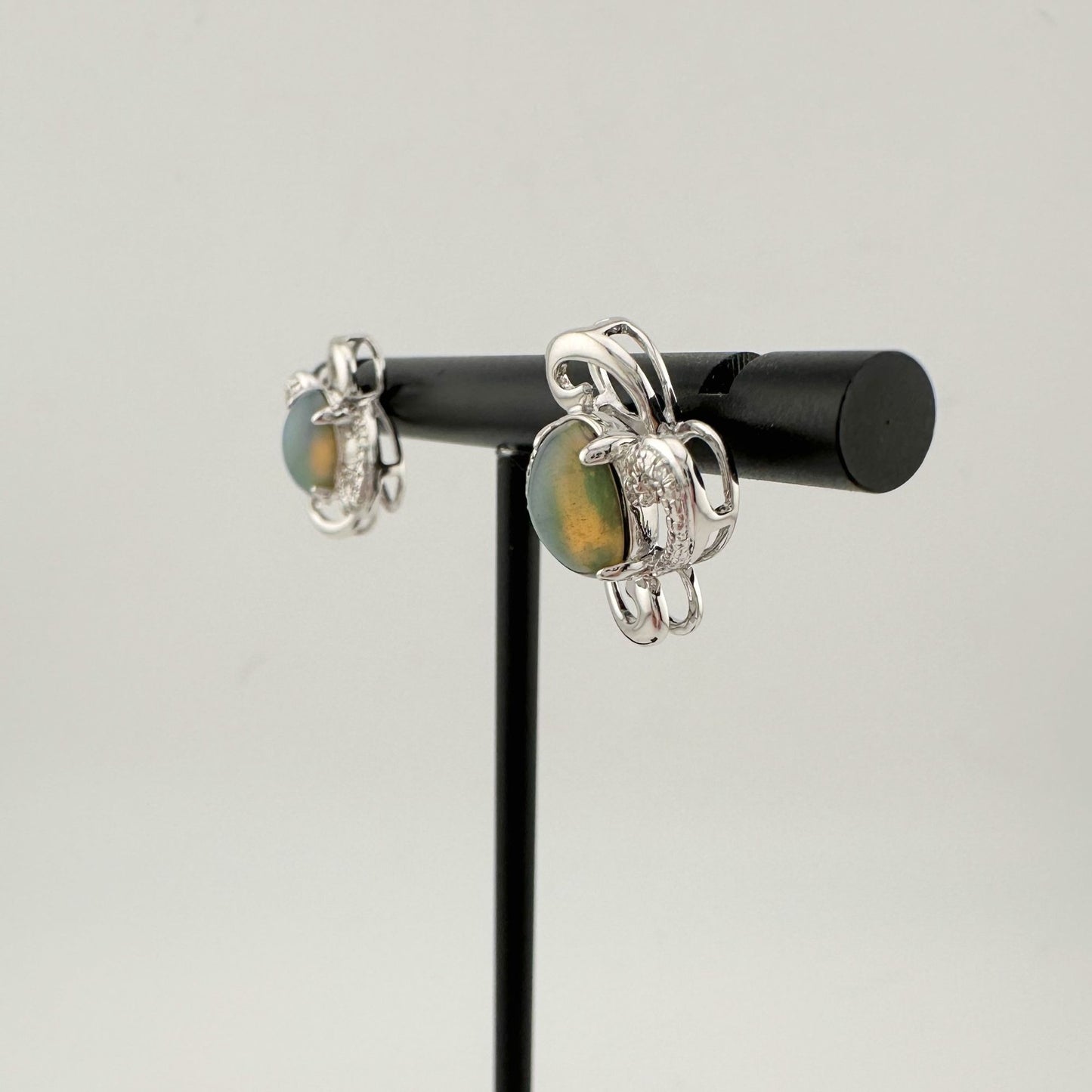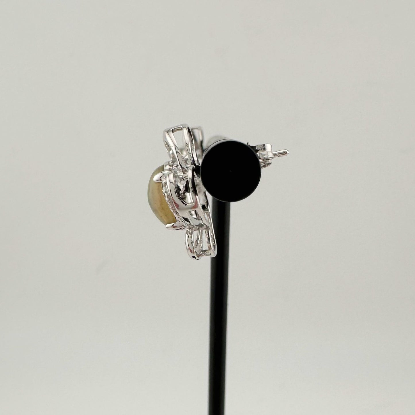 Mesmerizing Natural Cabochon Black Opal Earrings Diamond Accent - Sterling Silver