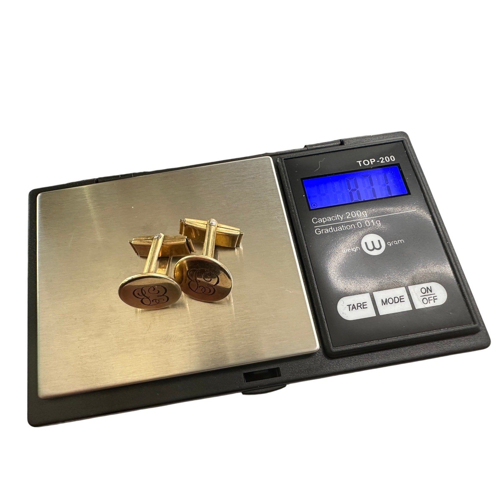 Mid Century Nanasi 12kt Gold Filled Men's Cufflinks - Script EB Initials etched on front