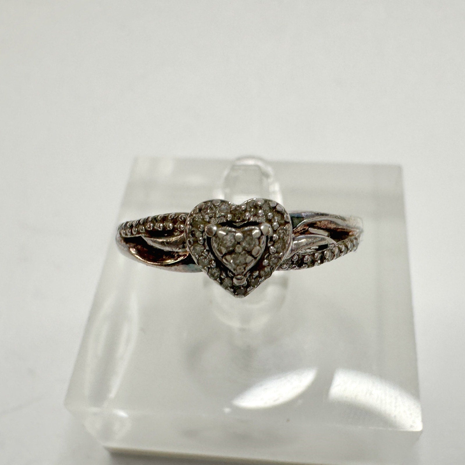 Pretty Sterling Silver Heart Ring with White Gemstones Size 8