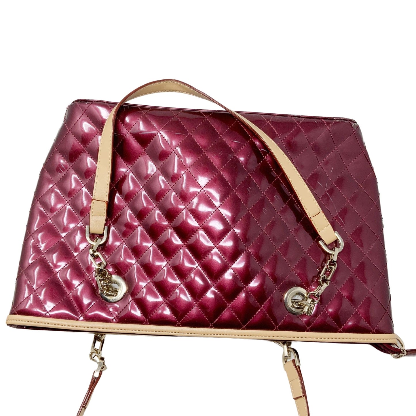 Red/Maroon women's shoulder bag. Purse / Handbag. Quilted pattern exterior.