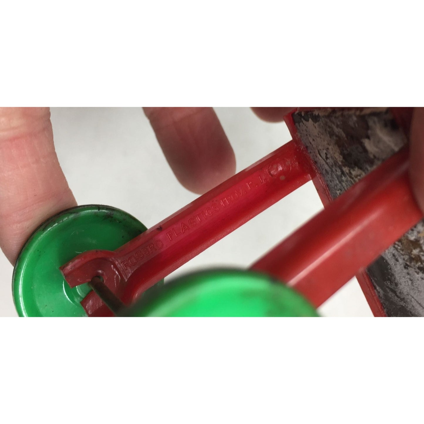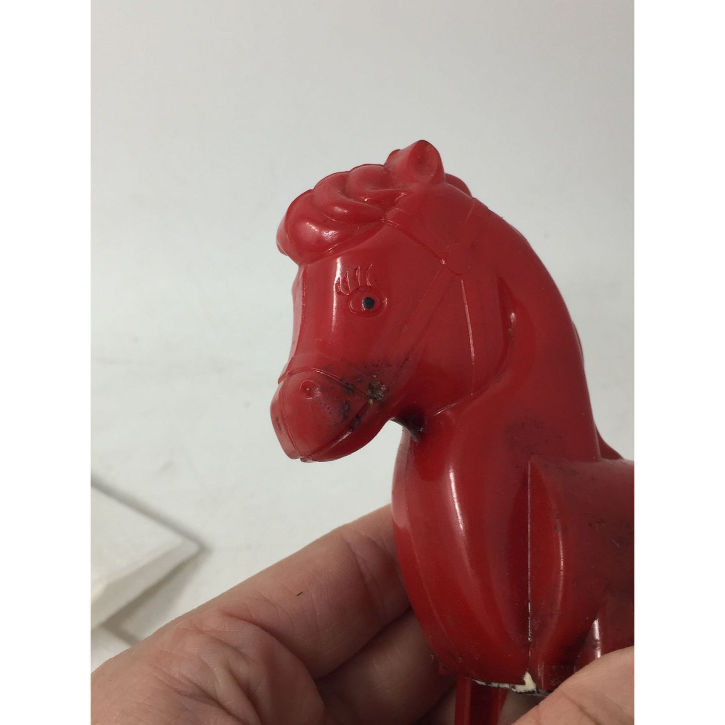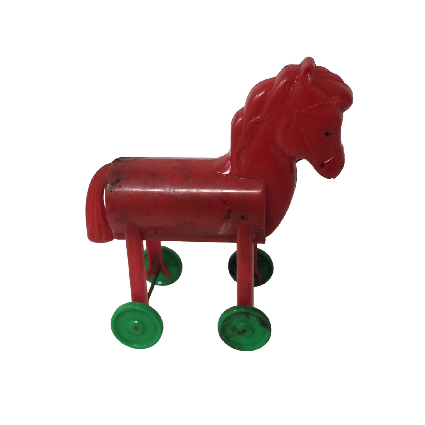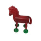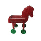 Rosbro Plastics Prov. R. I. Vintage Collectible Plastic Red Christmas Trojan Horse on Green Wheels with Silver Metal Base