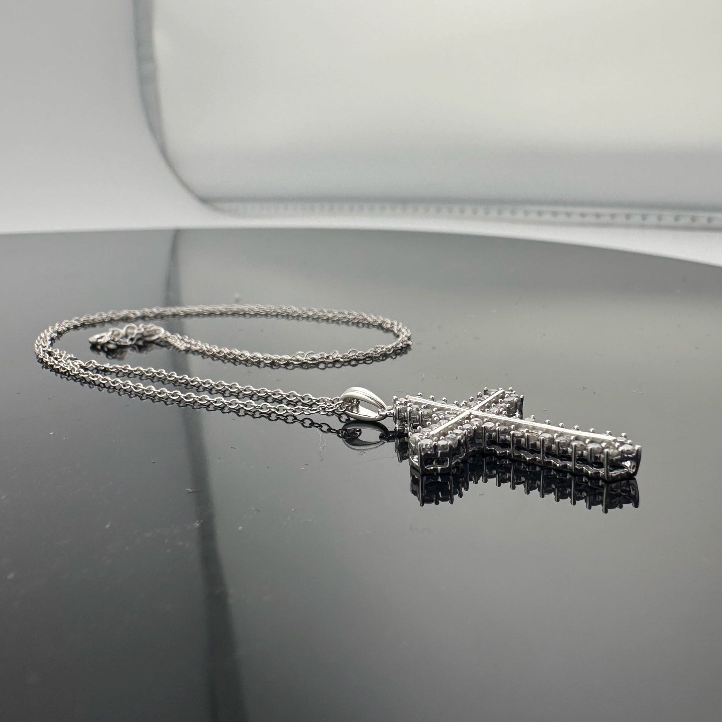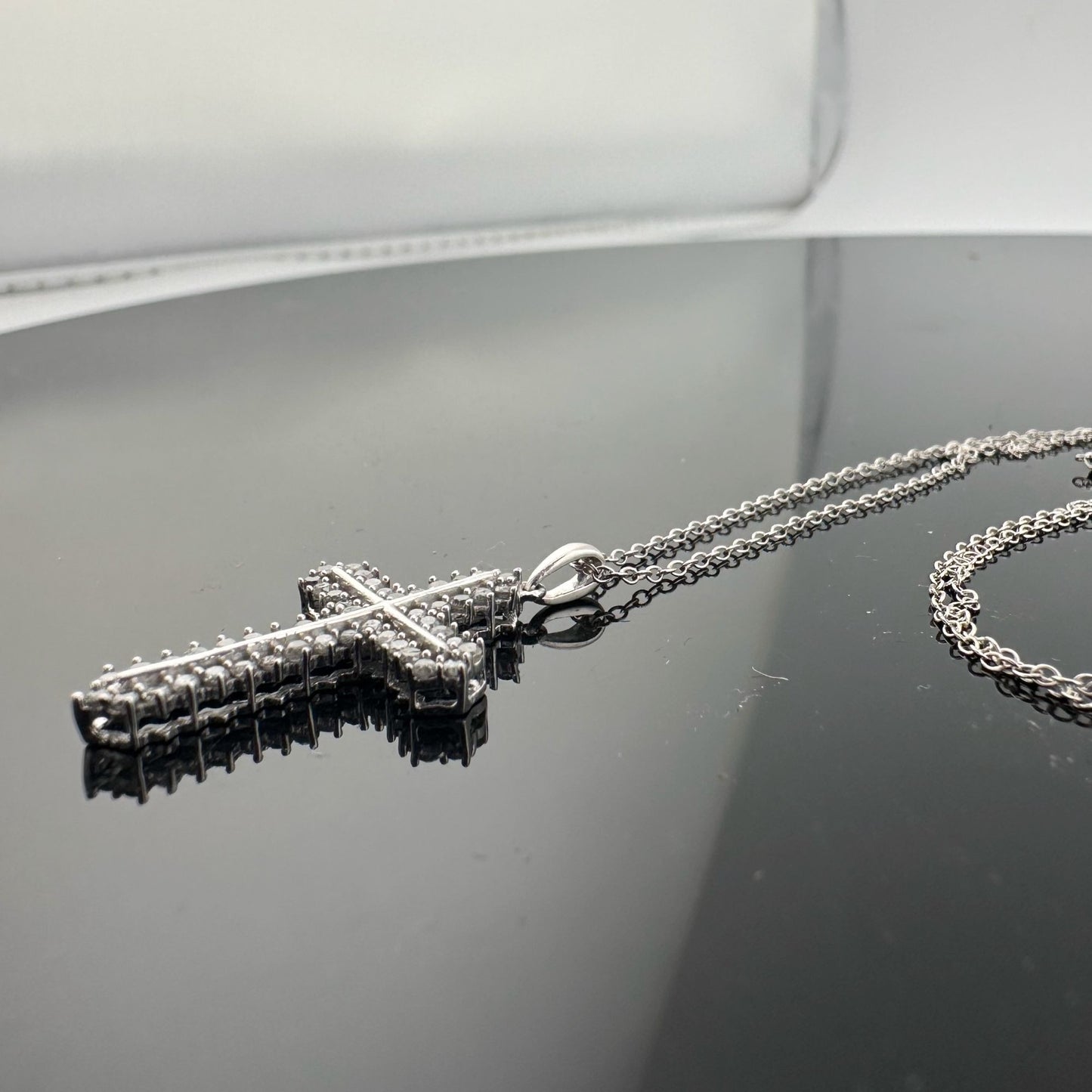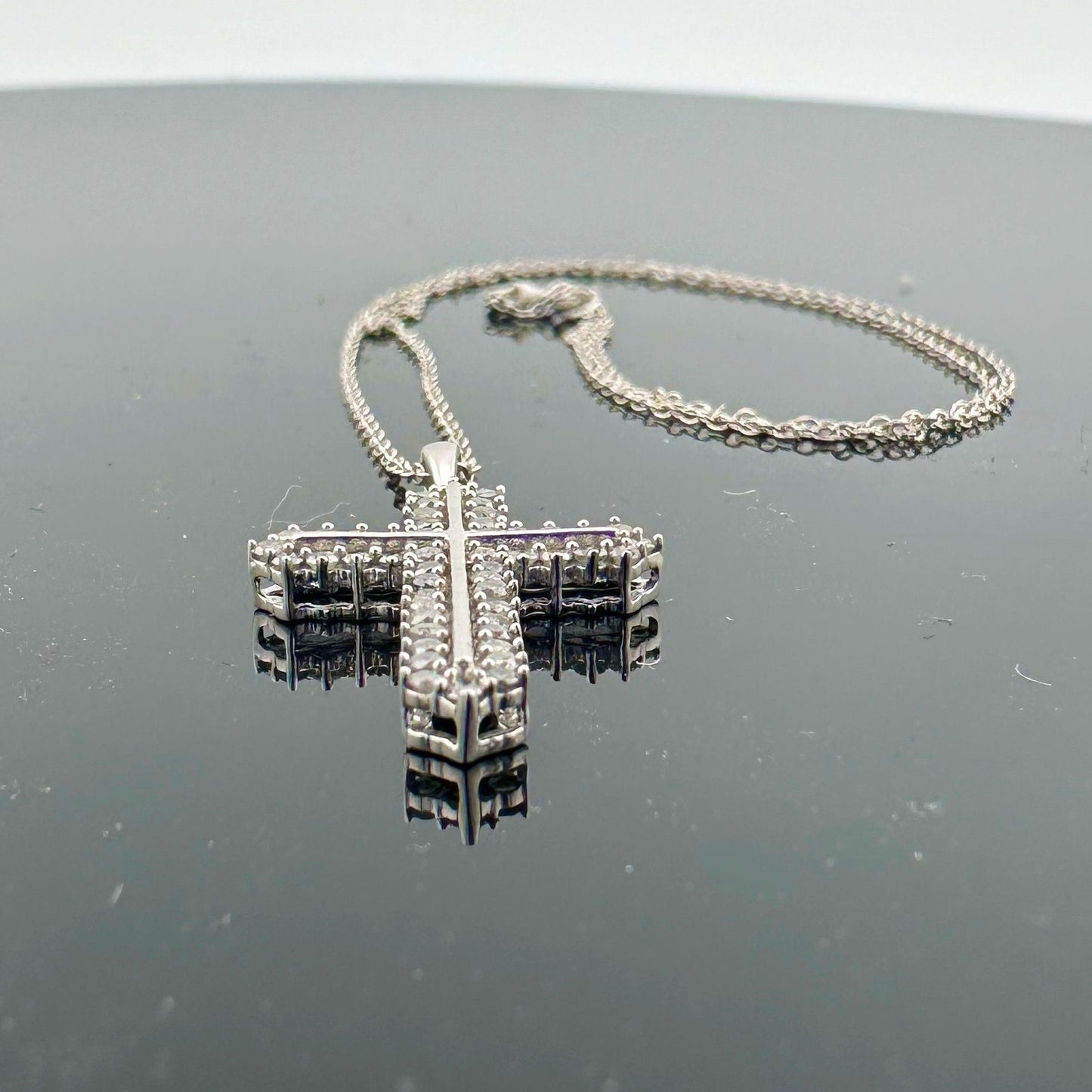 Shimmering 1/2 ct Diamond Cross Necklace - Sterling SIlver