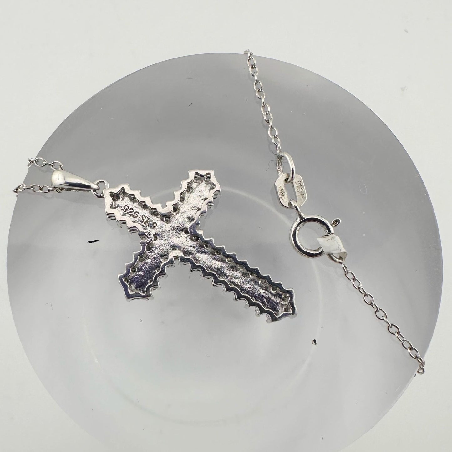 Sterling cross with vivid center and diamonds outlining cross. Natural Diamonds (1/2 ct total diamond weight).