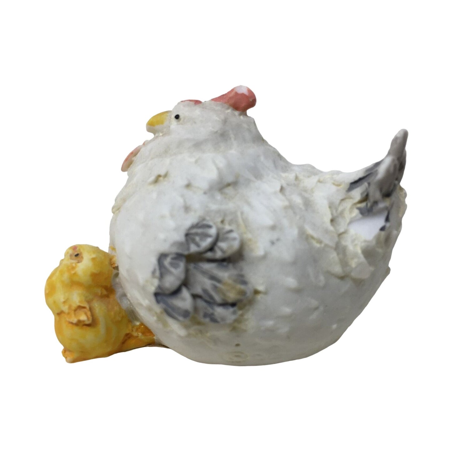 Small Chicken Figurine with 2 Yellow Baby Chicks