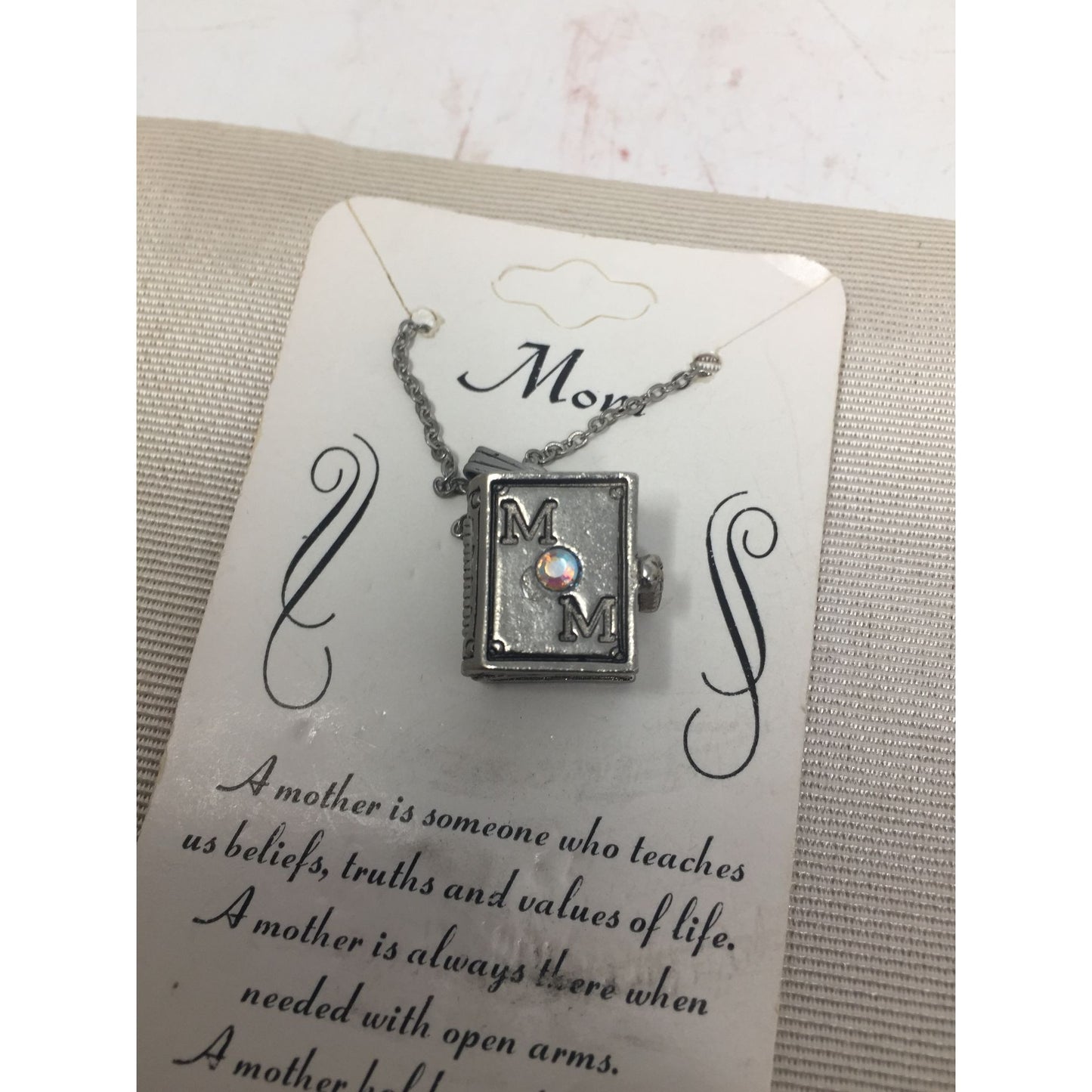 Necklace: Mom- A mother is someone who teaches us beliefs, truths and values of life. A mother is always there when needed with open arms. A mother holds our hand for a while but our heart forever. (Made in 2000)