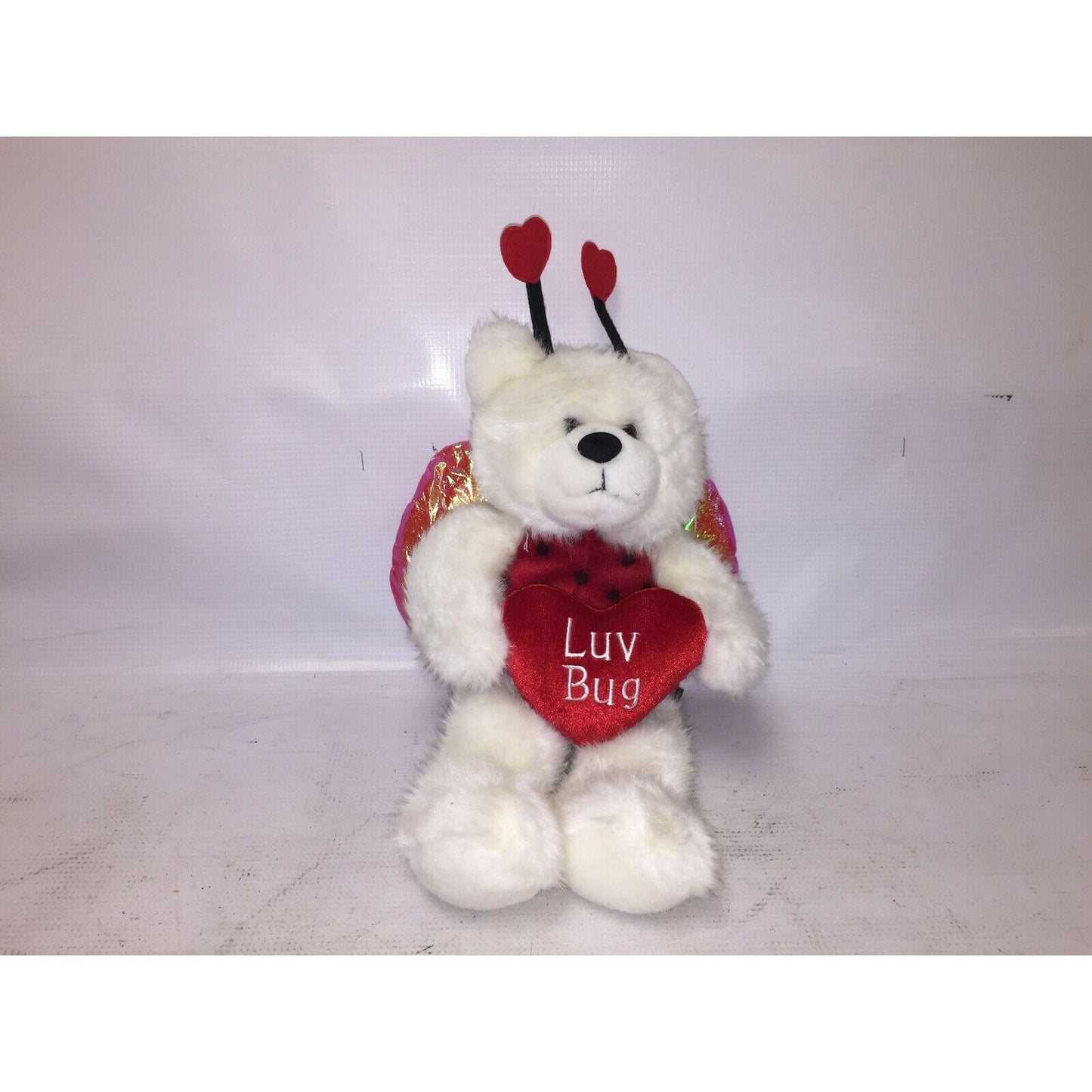 TEDDY BEAR Plush LOVE BUG w Hearts & Wings White Bear Luv Bug Gift