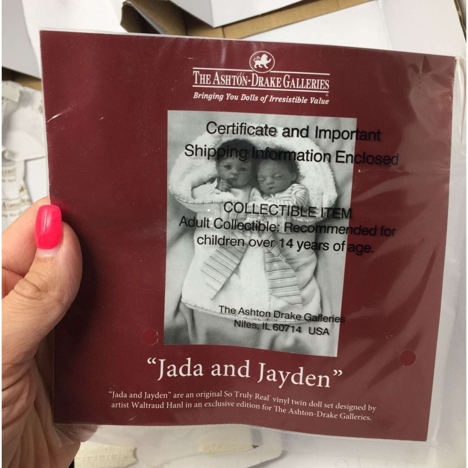 The Ashton Drake Galleries (ADG) Jada and Jayden Boy Girl Twin Baby Dolls