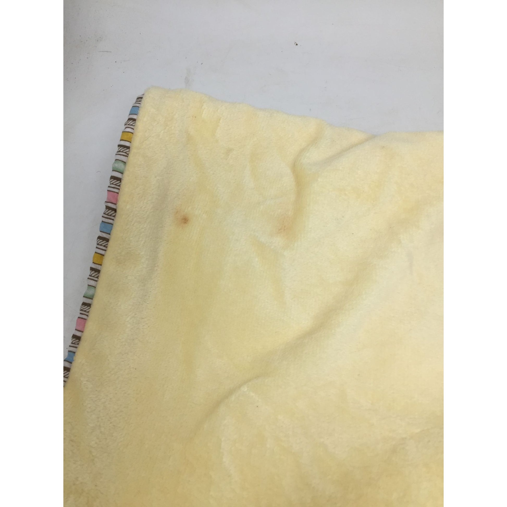 there are spots and stains on babies clothing and blanket. May need washed