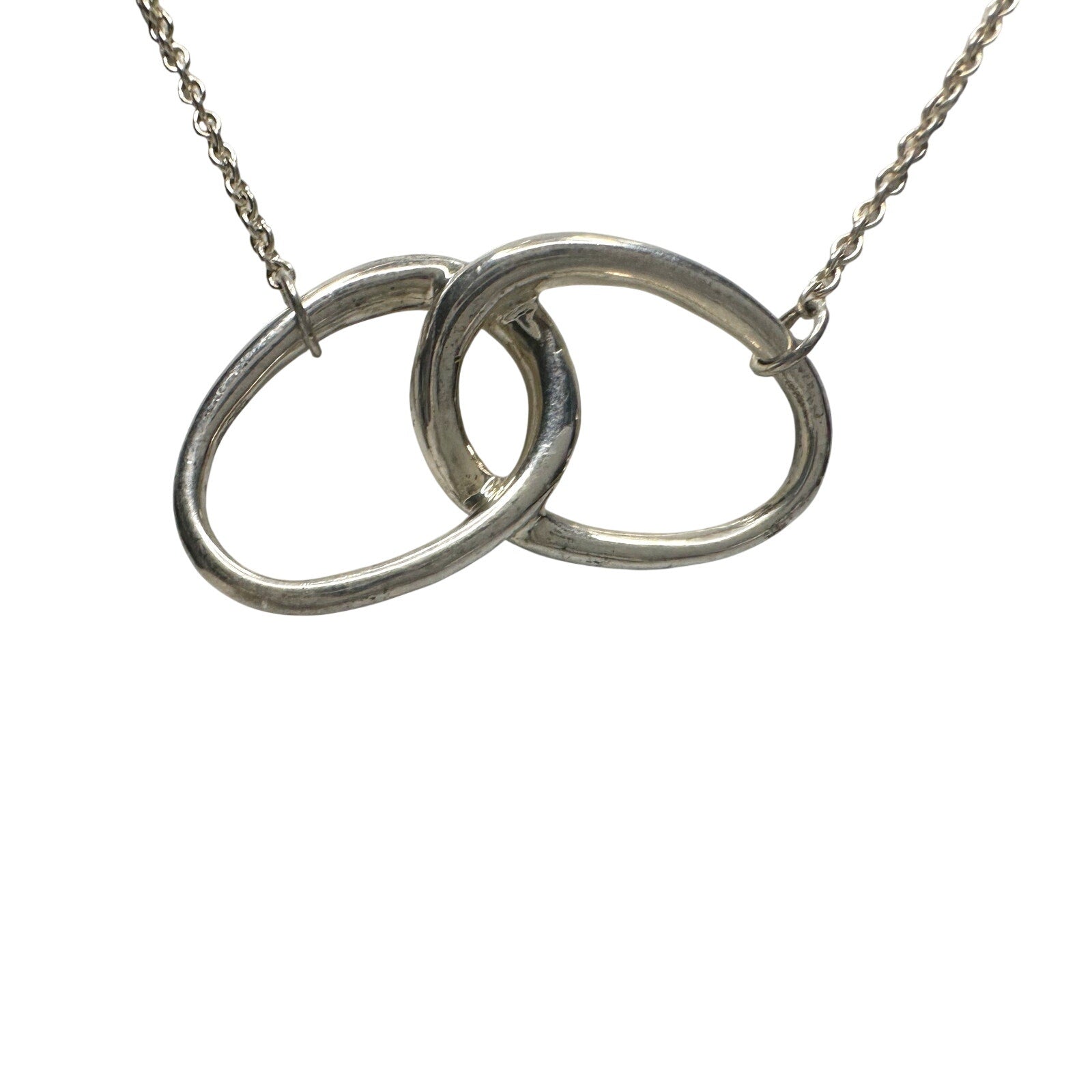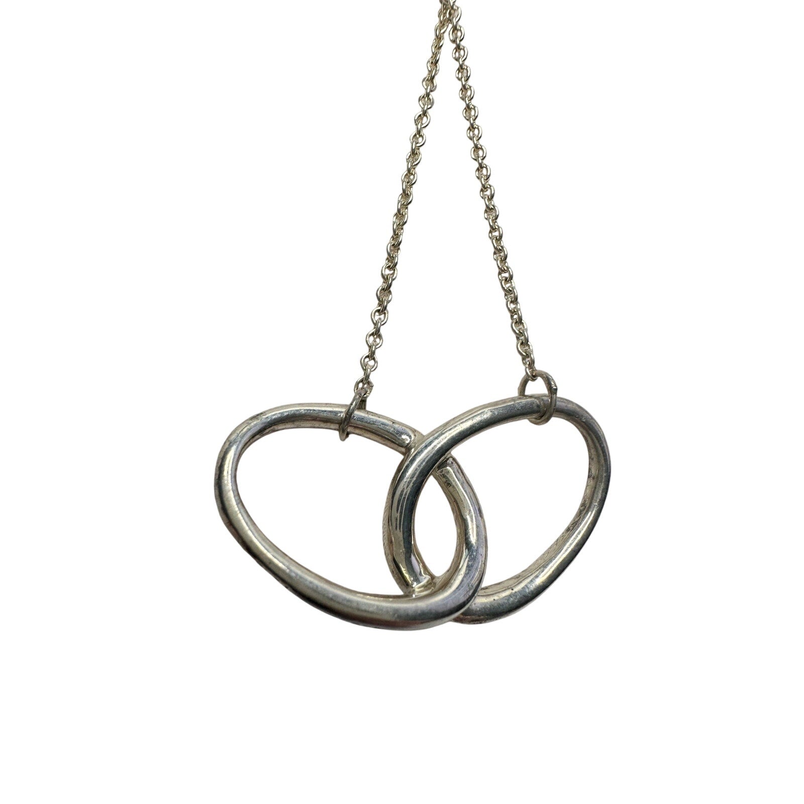 Tiffany and Co Elsa Peretti Large Double Loop Pendant Necklace 15" - Sterling Silver