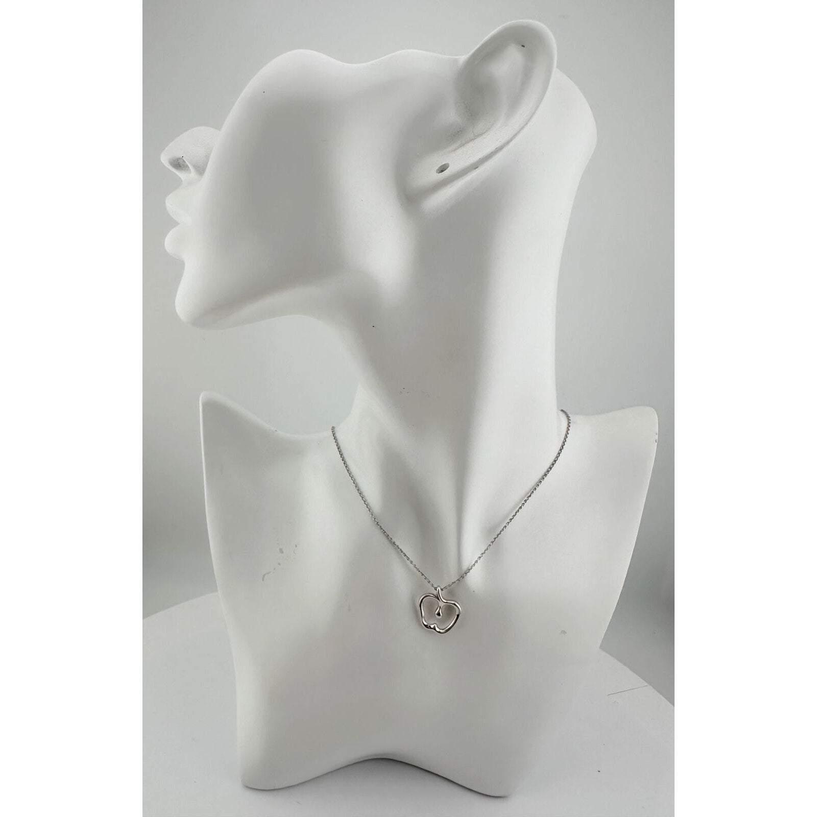 Beautiful artistic abstract Tiffany and Co apple pendant with 16" Sterling silver chain. Sterling silver apple outline on sterling chain.