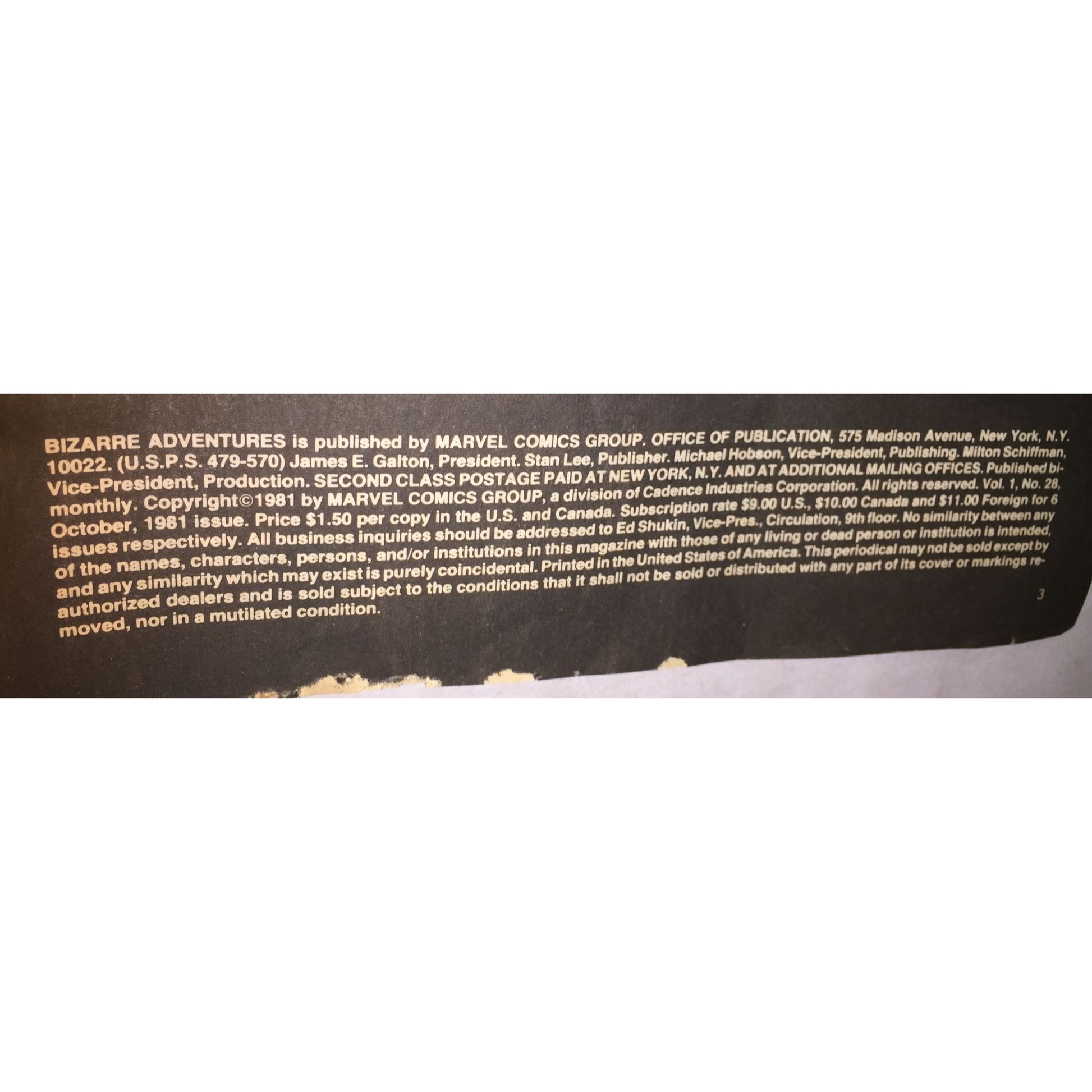 Vintage Collectible Marvel Comic Book - ''Bizarre Adventures''
