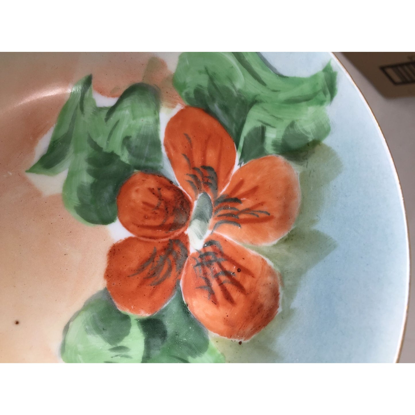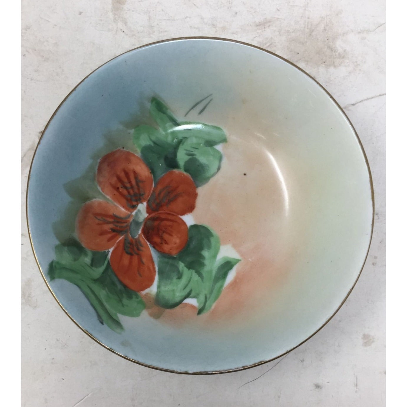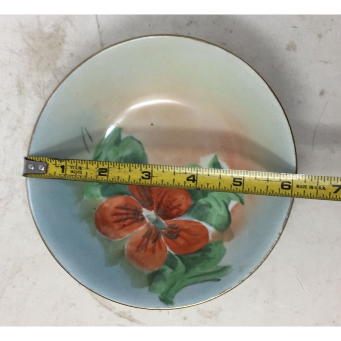 Vintage Hand Painted Bowl With a Red Flower/Green Leaves