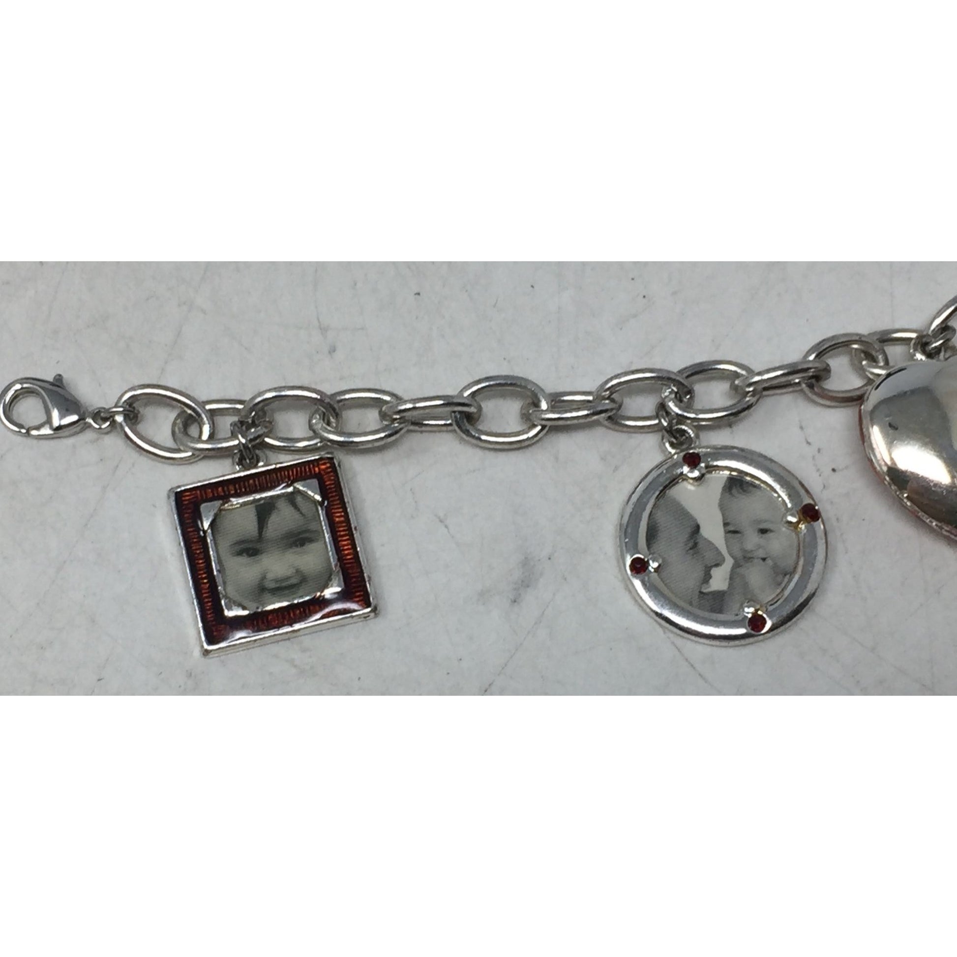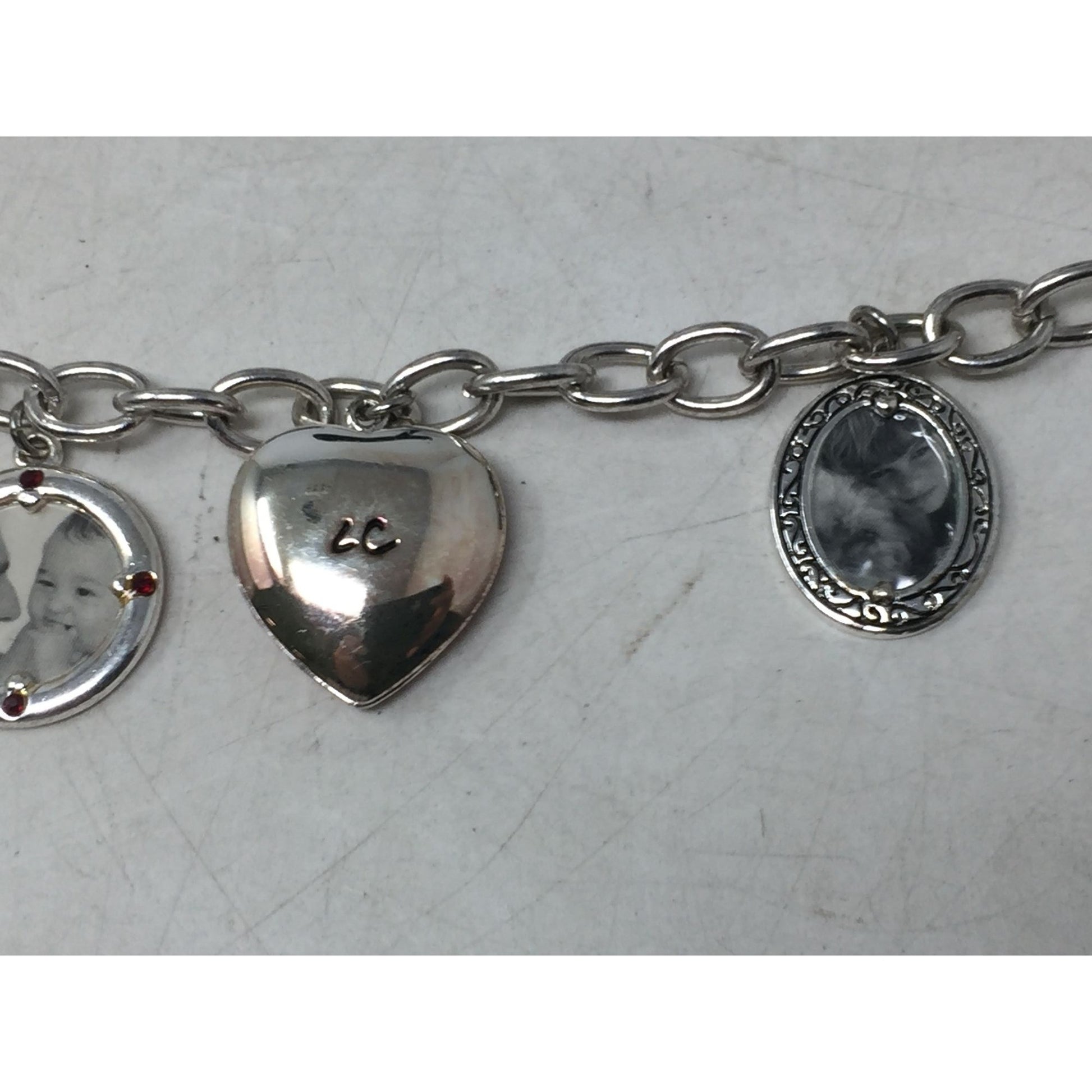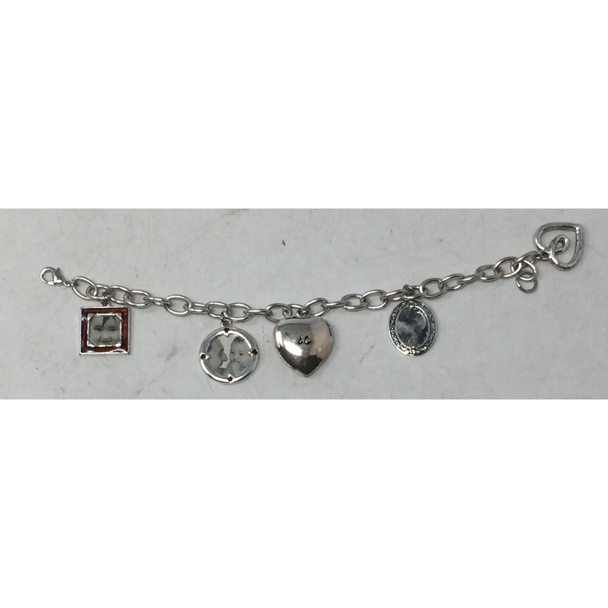 Vintage Liz Claiborne Women's Silver Toned Link Dangling Photo Charm Bracelet