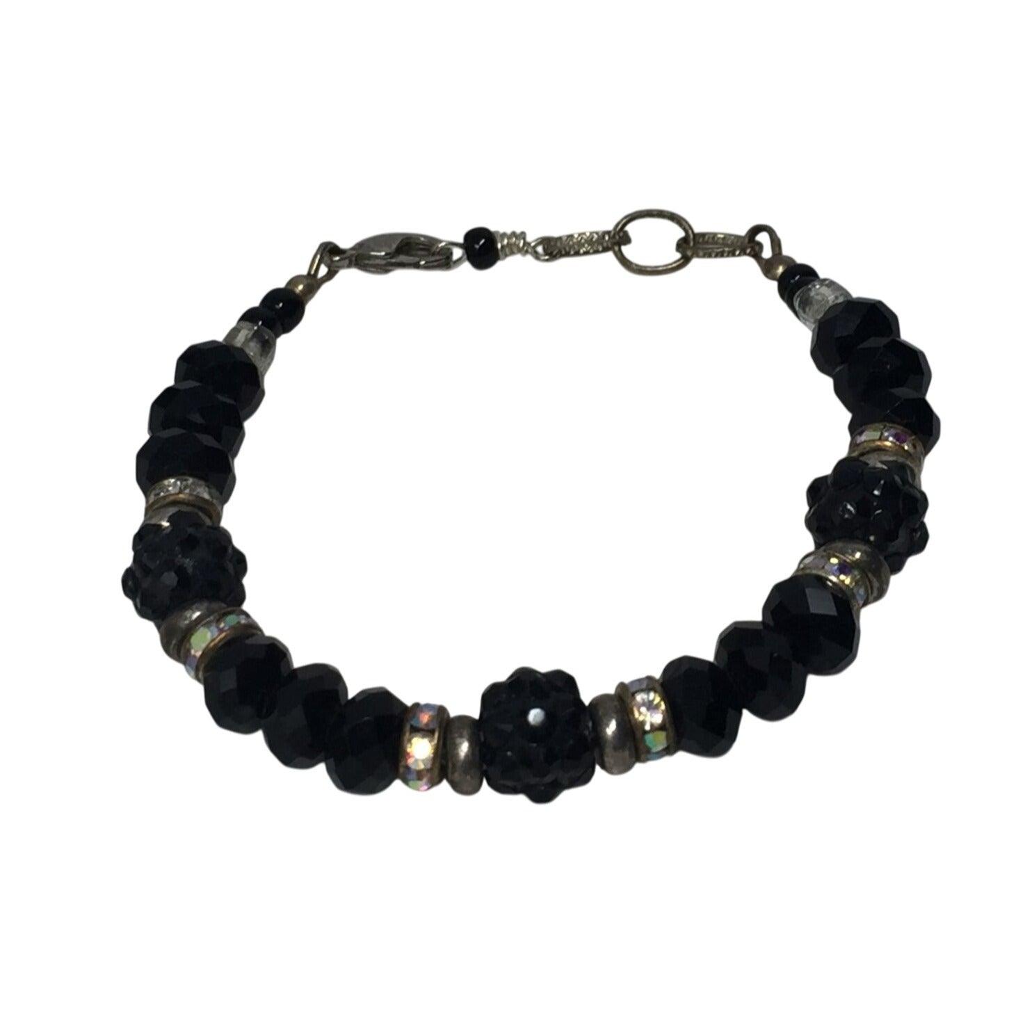 Women's Black and Silver Beaded Bracelet with Lobster Clasp