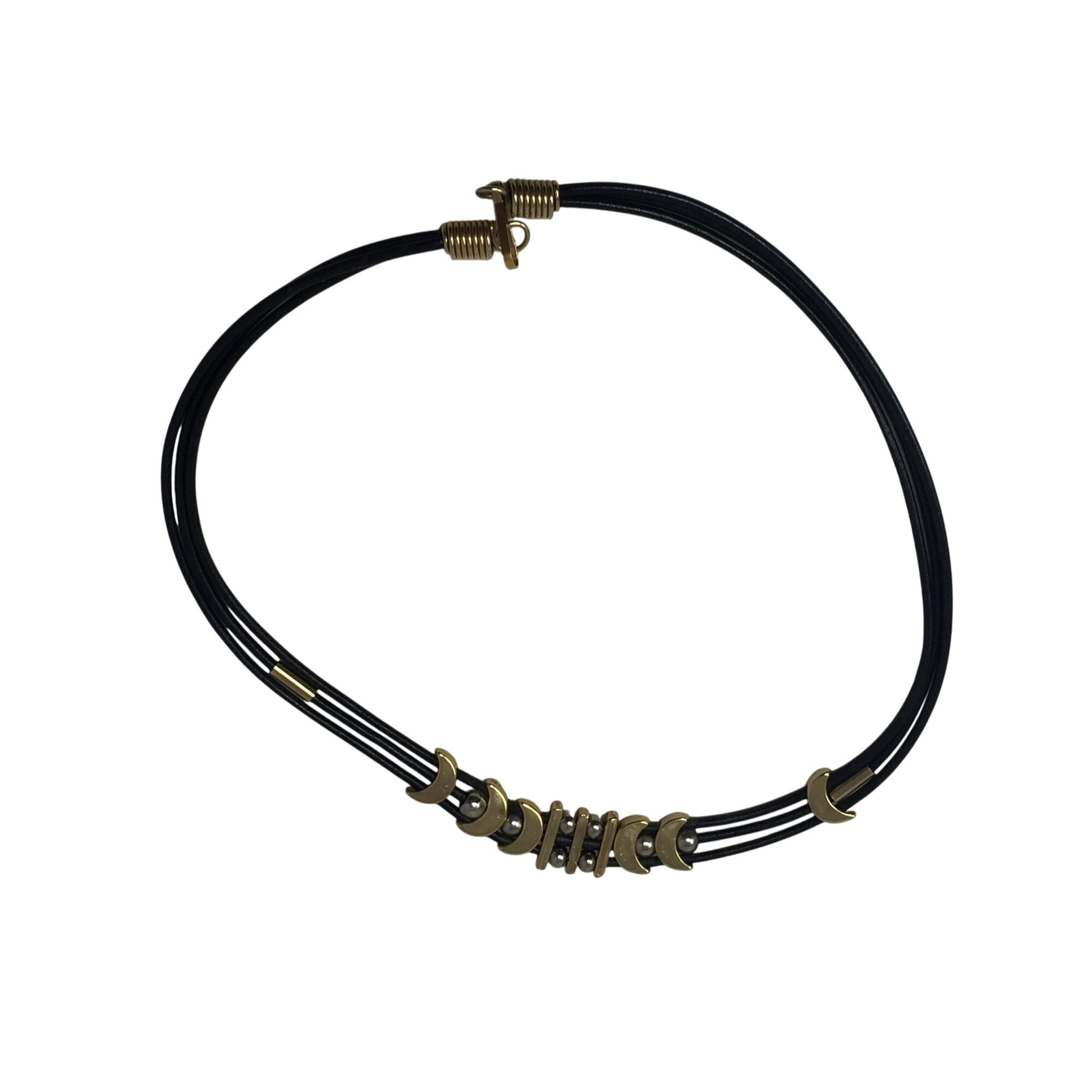 Women's Black Layered Rope Necklace with Gold and Silver Charms