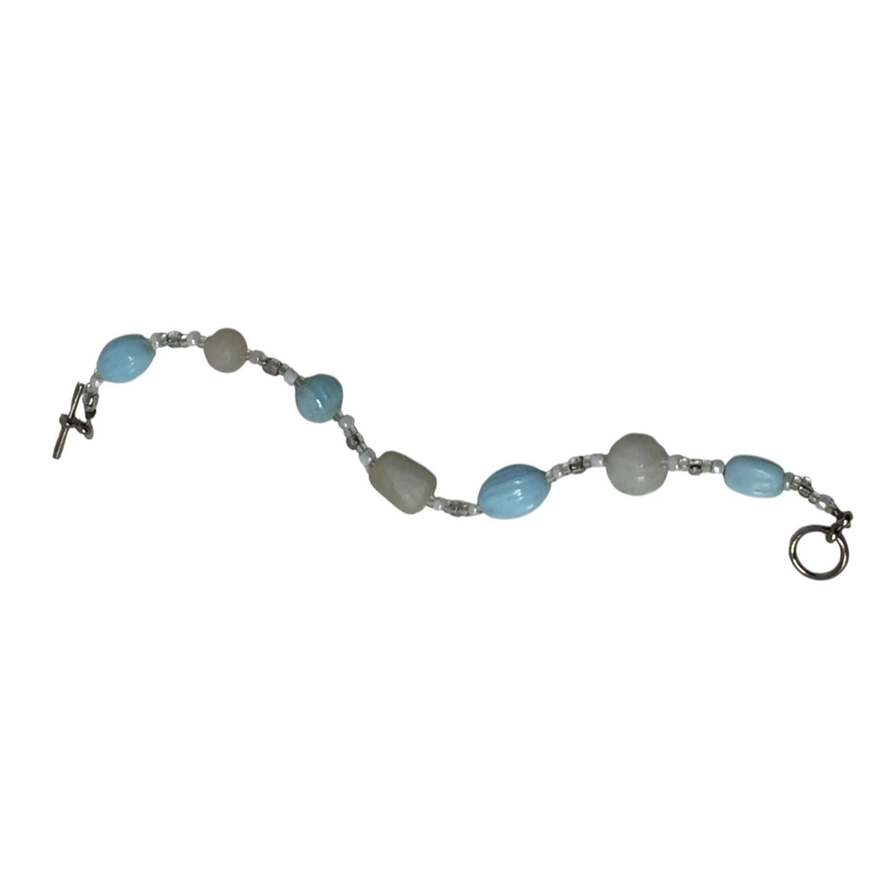 Women's Blue, Silver and White Beaded Bracelet with Toggle Clasp