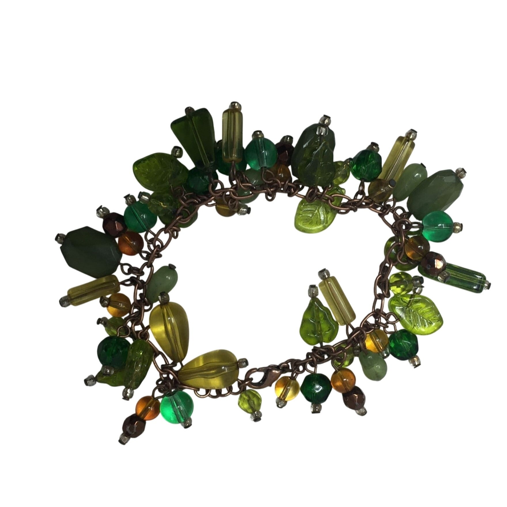 Women's Green Dangly Chunky Chain Link Charm Bracelet