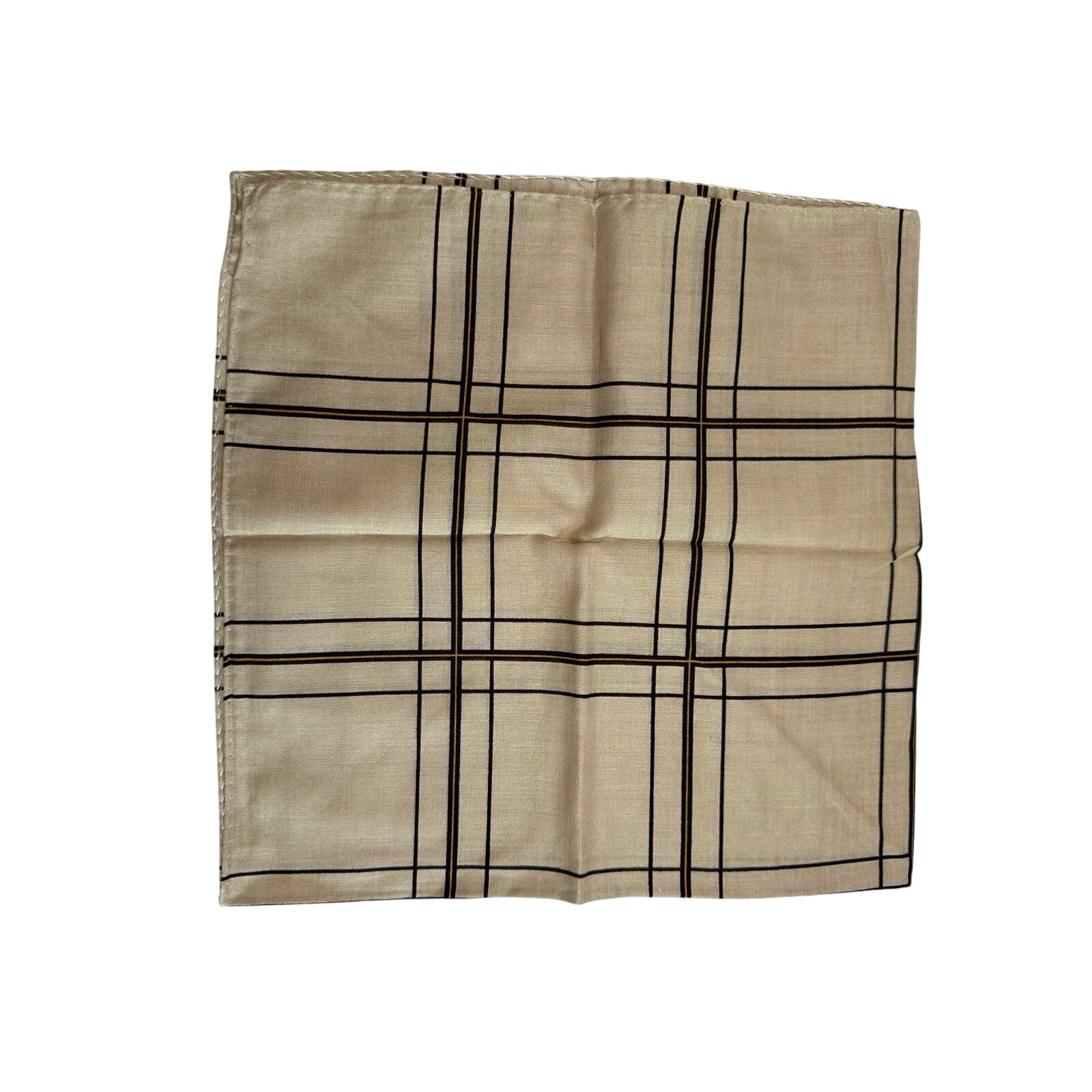 YSL Yves Saint Laurent Pocket Square Handkerchief / Scarf - Beige Plaid